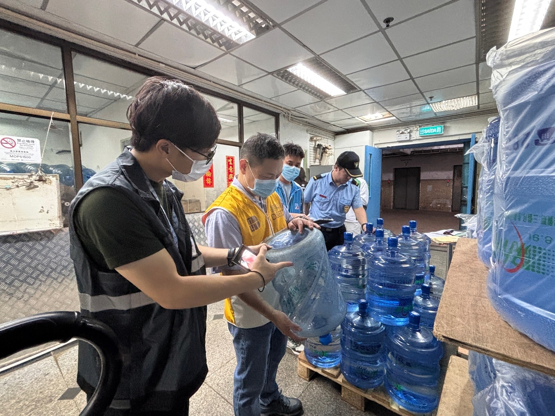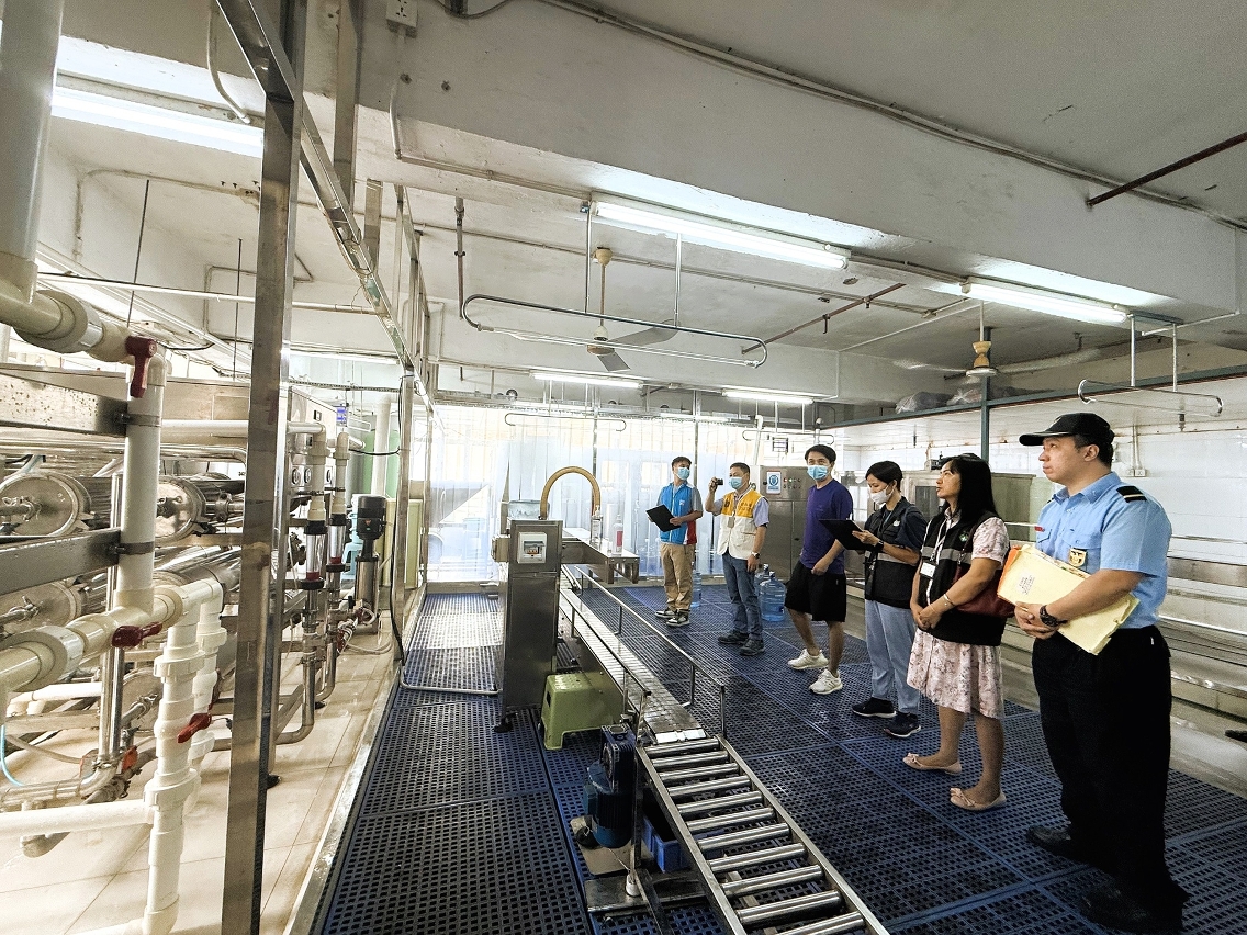 继本月初跨部门对全澳八家桶装饮用水生产场所进行排查后,由经济及科技发展局、劳工事务局、消防局、市政署和卫生局组成的工业场所检查委员会日前对全澳桶装饮用水生产场所开展联合巡查,检查场所建筑结构布局、食品安全、环境卫生、防火及职业安全等,尤其对整体生产流程的机电设备、配水系统,消杀工艺的程序和记录、设施设备的维护与保养等潜在风险控制点进行全面排查。