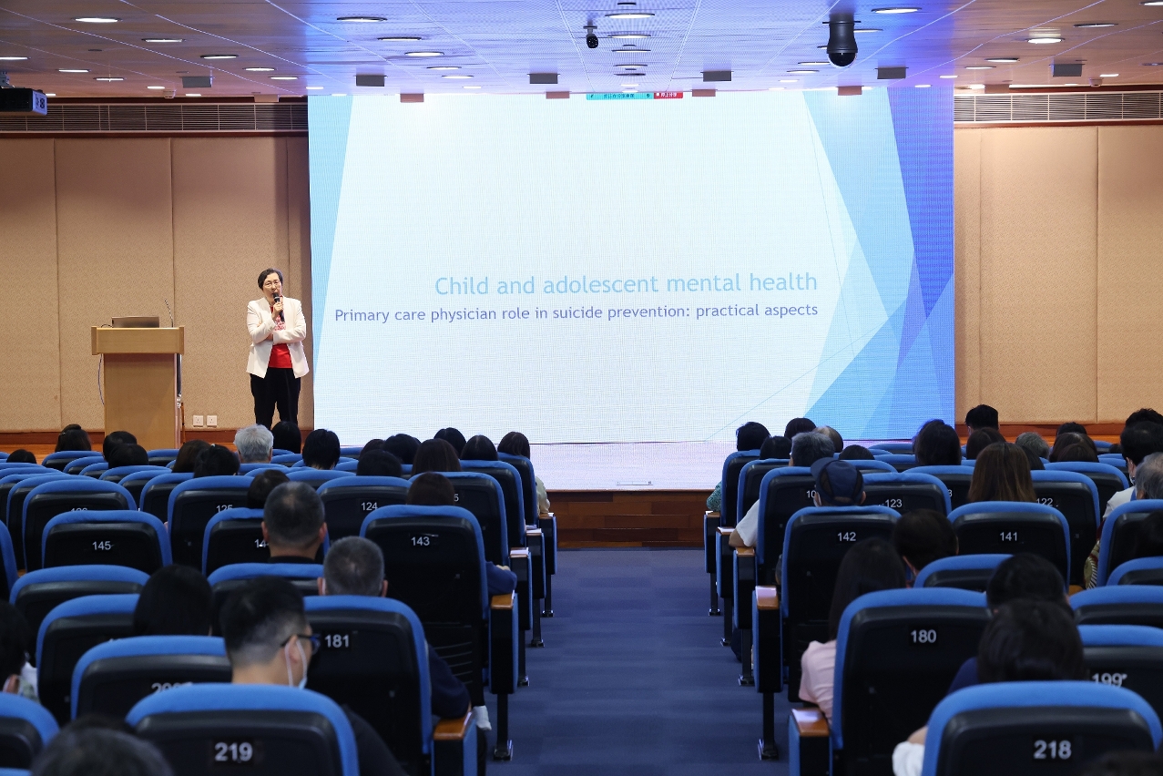 为深入贯彻落实《健康澳门蓝图》战略部署,持续深化基层医疗发展,卫生局设立的家庭医学培训基地与香港家庭医学学院联合,日前于黑沙环卫生中心举办“社区医疗身心健康培训课程”首单元—“青少年心理健康”专题培训,由香港家庭医学学院资深专家张洁影医生担任主讲,约250名本澳基层医护人员参与,标志着该系列培训课程正式启动。