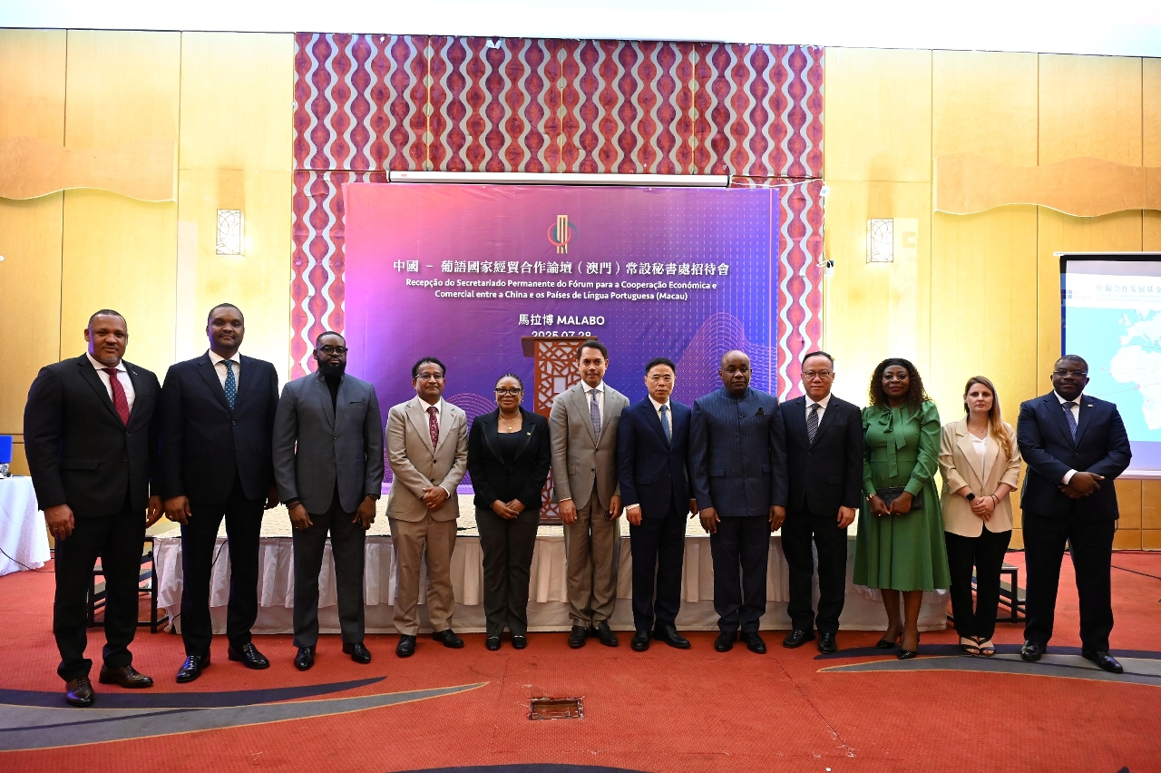 中葡论坛(澳门)常设秘书处季先峥秘书长率秘书处代表团于7月27日至29日访问赤道几内亚,参加“中国与葡语国家企业经贸合作洽谈会–马拉博2025”,并举办中葡论坛常设秘书处招待会。期间,秘书长先后拜会了中国驻赤道几内亚大使王文刚、赤道几内亚外长奥约诺,会见了赤道几内亚交通、电信与人工智能系统部部长埃维塔,并同赤道几内亚外交部秘书长姆巴共同主持召开了跨部门工作交流会。