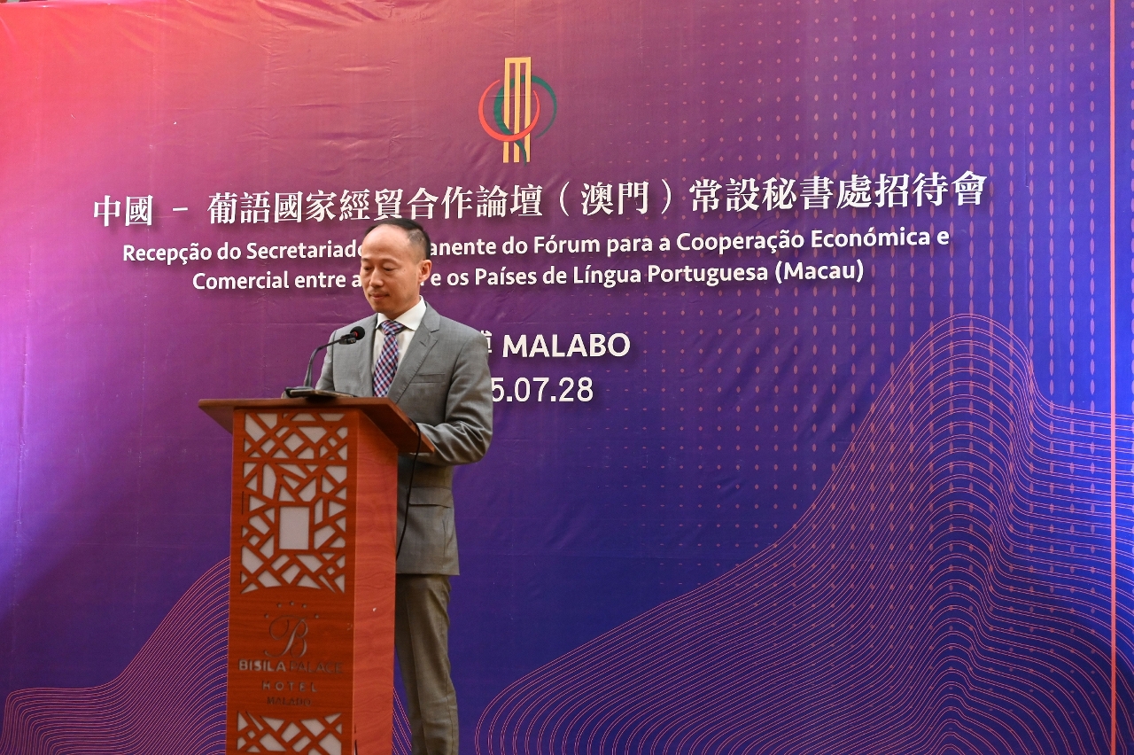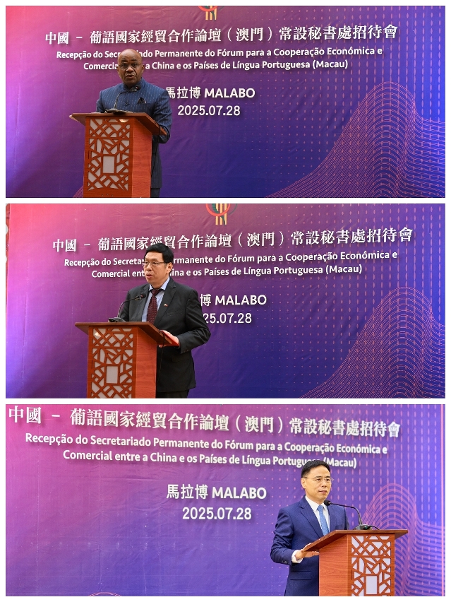 7月28日,中葡论坛常设秘书处招待会在马拉博举行。中国驻赤道几内亚大使王文刚、赤道几内亚副总理兼贸易、企业促进和工业部部长穆哈巴先后致辞,中葡合作发展基金管理公司总经理张健做专题推介。赤道几内亚政府相关部委代表、中国驻赤道几内亚使馆代表、赤道几内亚当地企业和商协会代表、赤道几内亚中资企业及机构代表、澳门招商投资促进局代表及企业代表团等共约150人出席活动。