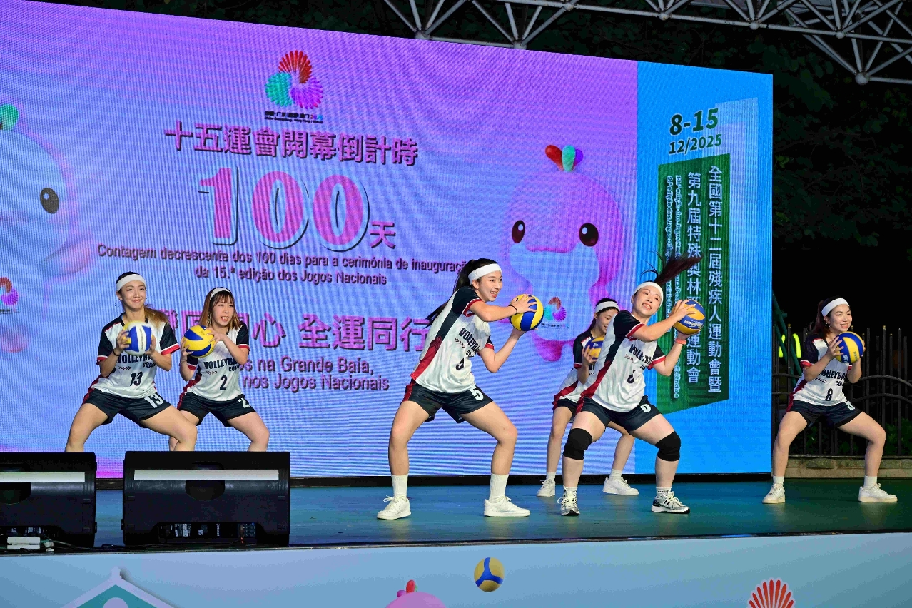 十五运会及残特奥会澳门赛区组委会亦于晚上8时在佑汉街市公园广场举行“倒数100日庆祝晚会”,吸引一众市民参与。十五运会及残特奥会澳门赛区组委会主席、社会文化司司长柯岚、社会文化司司长办公室主任林媛,十五运会及残特奥会澳门赛区筹备办公室主任潘永权,中国澳门体育暨奥林匹克委员会主席陈泽武及秘书长马志成主持了亮灯仪式,“全民全运 你我参与”同时点亮,象征着全澳市民携手同心,热烈迎接全运会的到来。晚会内容精彩丰富,龙狮献艺、空手道、幼儿篮球、排球及乒乓球表演,以及动感歌唱演出轮番登场,市民携老带幼,气氛欢乐。现场更设有运动体验和摊位游戏,让市民亲身参与、多角度感受全运氛围,场面热闹。