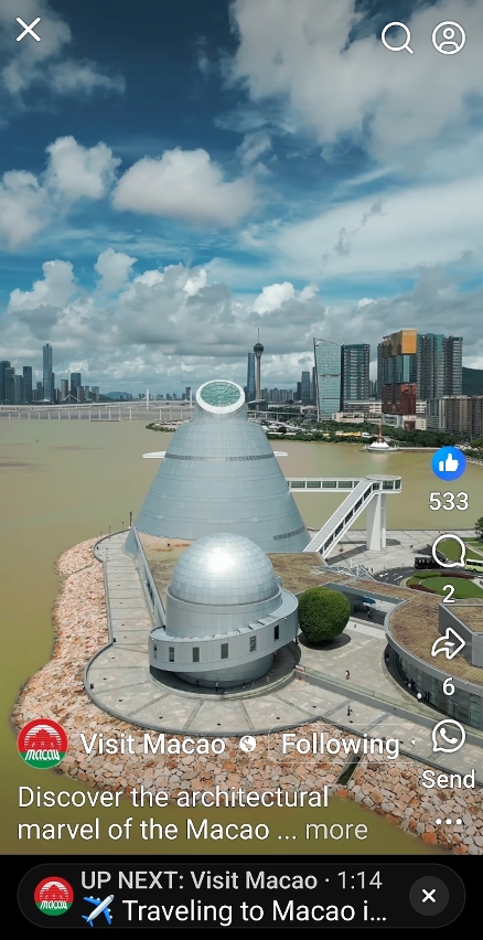 旅游局紧贴市场趋势,优化宣传策略,除了使用传统推广手法,并善用各社交媒体平台,使用创新、互动的方式向全球旅客传递澳门的最新旅游资讯、节庆盛事及特色体验。