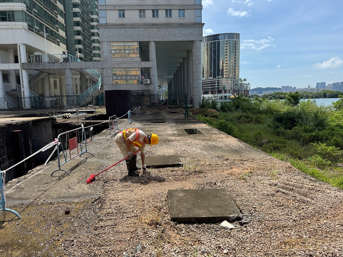为收集三幅用地的现状资料,尤其已局部建成地下结构物的实际状况,以便筹备后续方案编制及咨询工作,公共建设局已启动前期工作,目前已基本完成A3及A4地段的抽排积水及清理工作,正进行测绘记录;而A9地段因现存建筑物结构状况较为复杂,抽排积水仍在进行当中,但已提前清理杂草杂物和地面积水以预防蚊患。针对三幅用地现有已建成的地库结构,政府将委托质检机构对原有建筑进行结构检测,以获取资讯推展下一步设计工作。