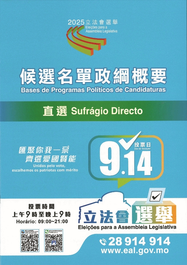 澳门特别行政区第八届立法会选举的竞选活动期今(30)日展开,立法会选举管理委员会已于全澳101个地点放置直选和间选的《候选名单政纲概要》,让公众免费索阅。政纲概要亦已上载至立法会选举网页(www.eal.gov.mo),供浏览及下载。