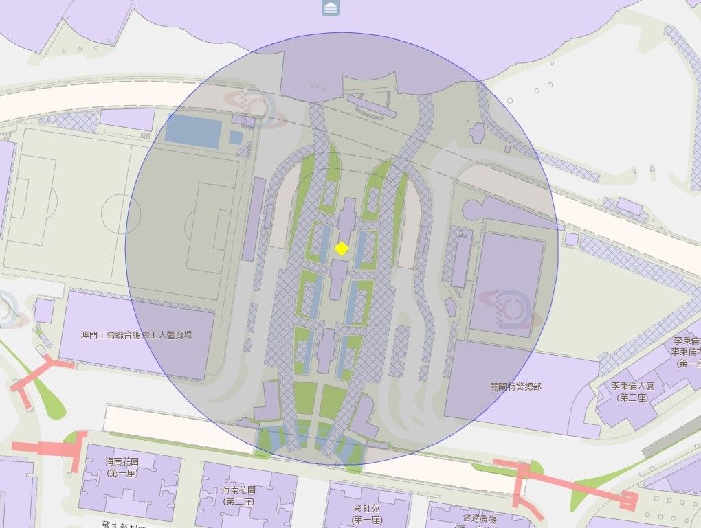 澳门中央图书馆附近风险区域100米半径范围