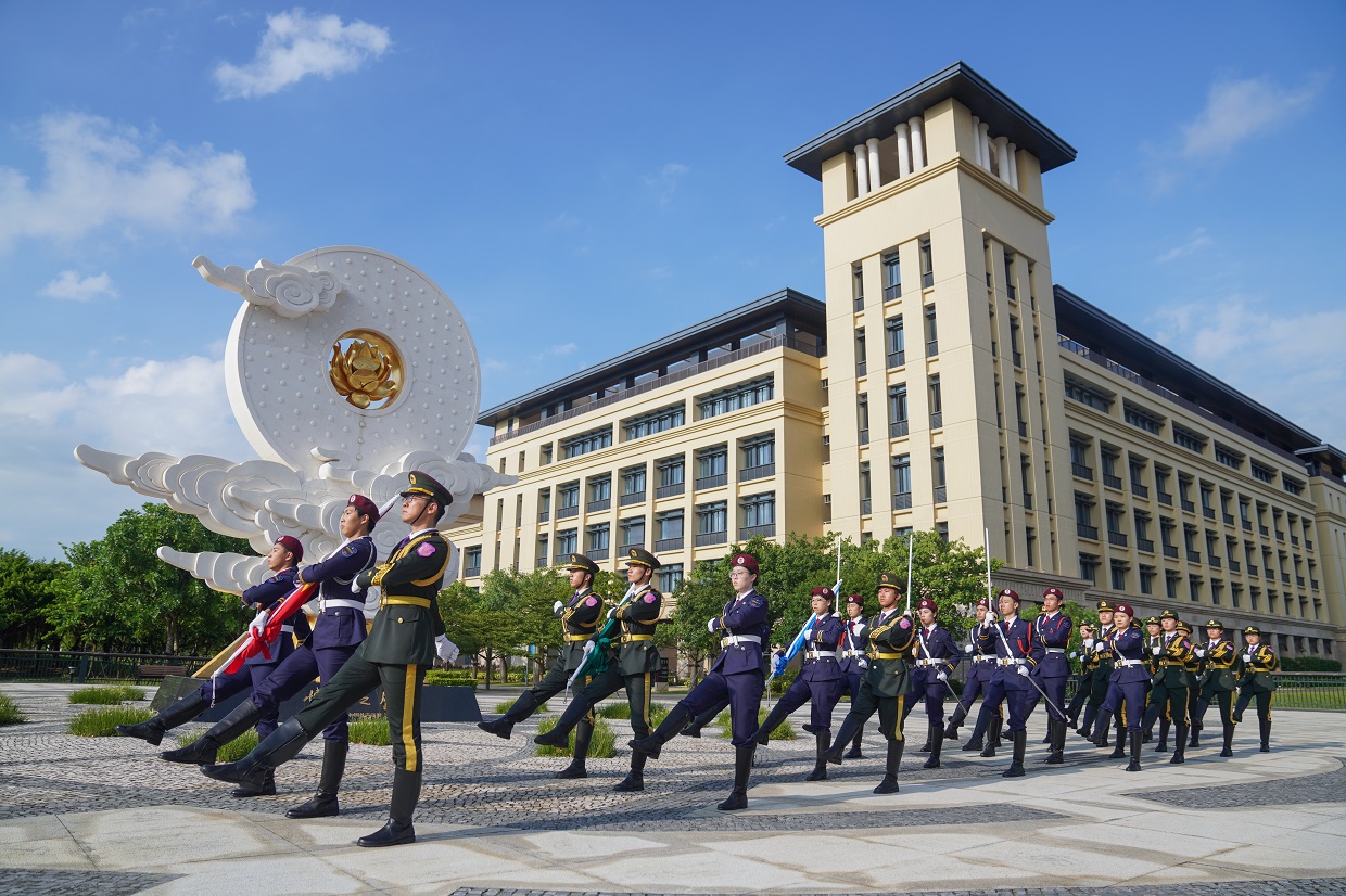澳大国旗仪仗队副队长林国诚表示,清华国旗仪仗队时隔一年再度来澳,与澳大国旗仪仗队以旗为媒、重聚濠江。从联合操演到深度交流,每一环节均促进两地青年的思想交融与技艺互鉴。尽管身处不同地域、制服各具特色,但当五星红旗升起之时,两校队员胸中奔涌着同样炽热的爱国之情,肩负着共同的神圣使命——捍卫国旗尊严,传扬爱国精神。这一幕,不仅展现了新时代中国青年的卓然风采,更生动谱写了“一国两制”背景下内地与澳门青年同心向前、并肩奋进的感人篇章。