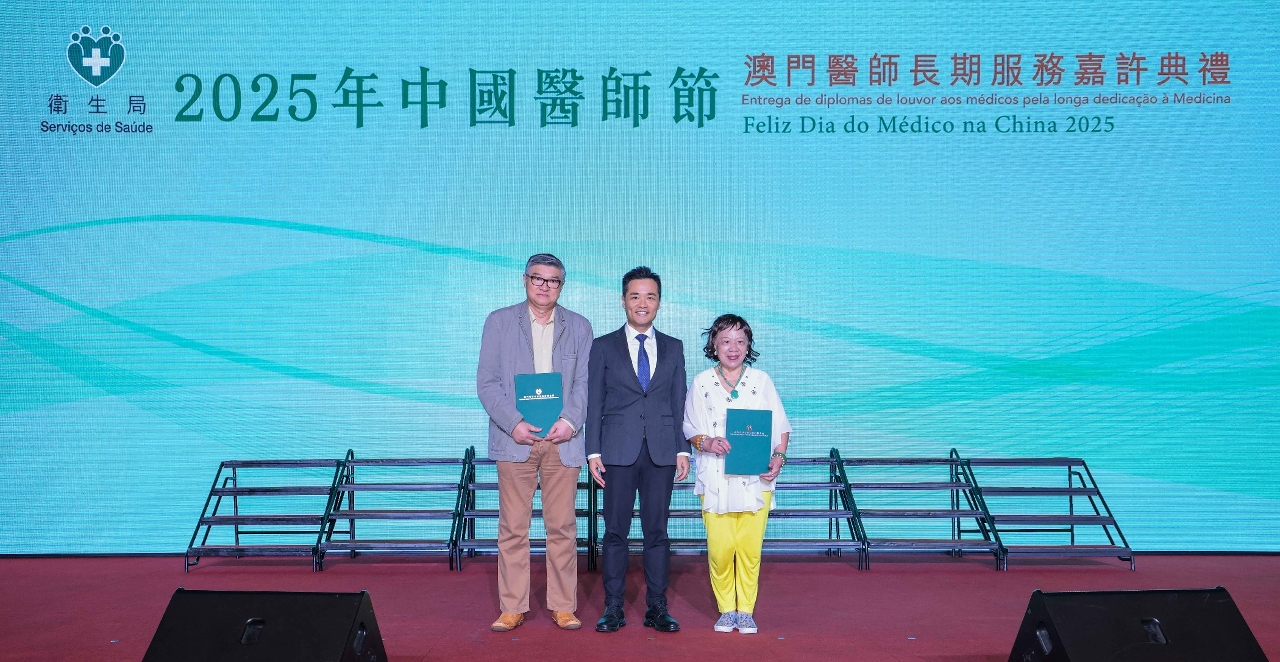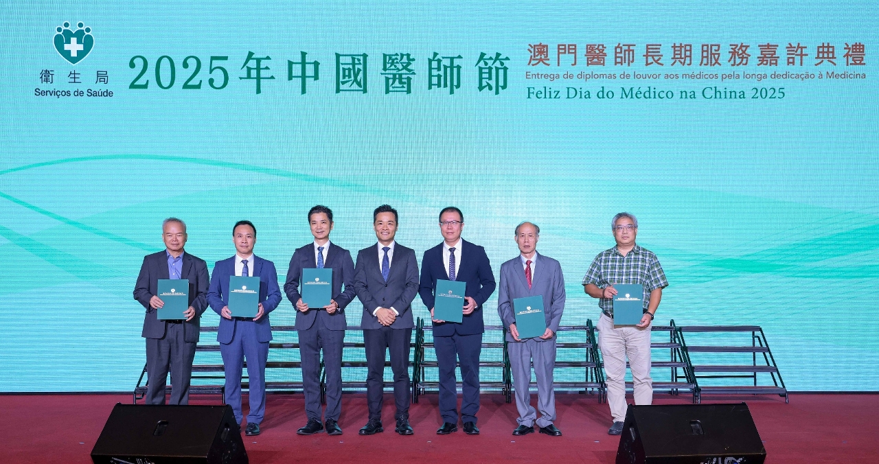 昨(31)日卫生局举办“2025年中国医师节 - 澳门医师长期服务嘉许典礼”,向25位服务满30年及50年或以上本澳资深医师颁发嘉许状。 在典礼上,卫生局罗奕龙局长首先代表特区政府向全澳每一位坚守岗位、无私奉献的医师致以崇高敬意,并感谢长期支持澳门医疗卫生事业发展的各界人士。他指出,澳门回归祖国26年来,在国家的大力支持下,医疗服务进入加速发展期,特别是社区医疗卫生服务网路已有效实现“全民健康覆盖”。在应对重大传染病方面,离不开本澳医疗人员的专业付出。为贯彻落实习近平主席“构建涵盖生命全周期的保障体系,确保医疗服务全面覆盖居民需求”的指示精神,卫生局正积极落实《健康澳门蓝图》和“健康社区”计划,透过联动各界力量发挥协同效应,推动资源下沉至社区,以提升居民整体健康水平;同时致力建构完善的医疗人才队伍,包括透过“家庭医学培训基地”加强社区医生培训、拟定澳门青年医生粤港澳大湾区培训计划等多项举措。展望未来,期望与各界继续携手合作、团结一致,秉持“以人为本”的理念,共同为本澳医疗卫生事业作出更大的贡献。
