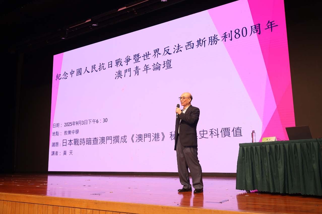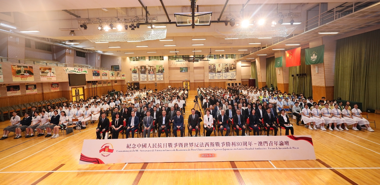 教育及青年发展局于9月3日在教业中学举办“纪念中国人民抗日战争暨世界反法西斯战争胜利80周年─澳门青年论坛”,藉此进一步加深青年全面了解中国人民取得抗日战争胜利的伟大历程,深刻领悟“铭记历史、缅怀先烈、珍爱和平、开创未来”的精神内涵。