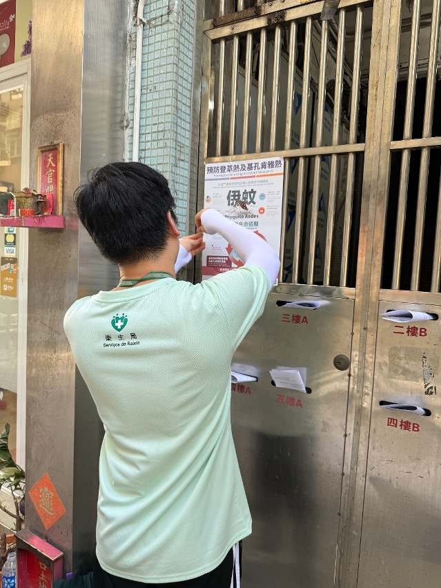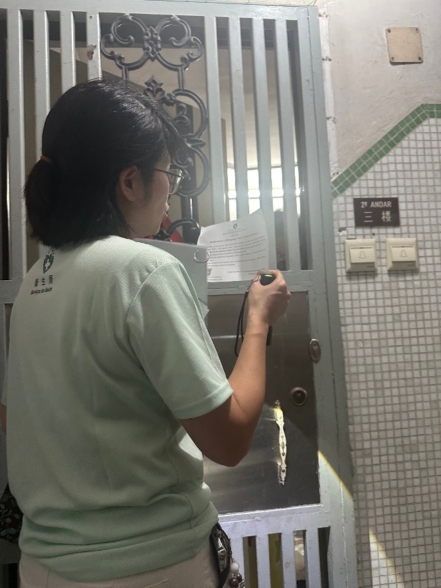 为应对本澳第3例本地基孔肯雅热病例,及早发现怀疑病例,卫生局日前完成区神父街八达新邨(兆发楼)风险区域的应对工作后,于昨(10)日及今(11)日继续在得胜街附近风险区域开展应对工作,透过挨家挨户上门检查,向居民进行防蚊健康宣教,面对面指导辨识家中容易积水的位置,手把手教导清除积水方法,以减少白纹伊蚊孳生。期间共巡查138座楼宇共1,511个住户及174间地铺,向2,896户派发宣传单张;此外,亦于区域内设置临时抽血站,为出现疑似基孔肯雅热症状的人士进行抽血送检,其中有2名居民有基孔肯雅热疑似症状已即时抽血检测,检测结果为阴性,未发现与病例相关连的其他个案。