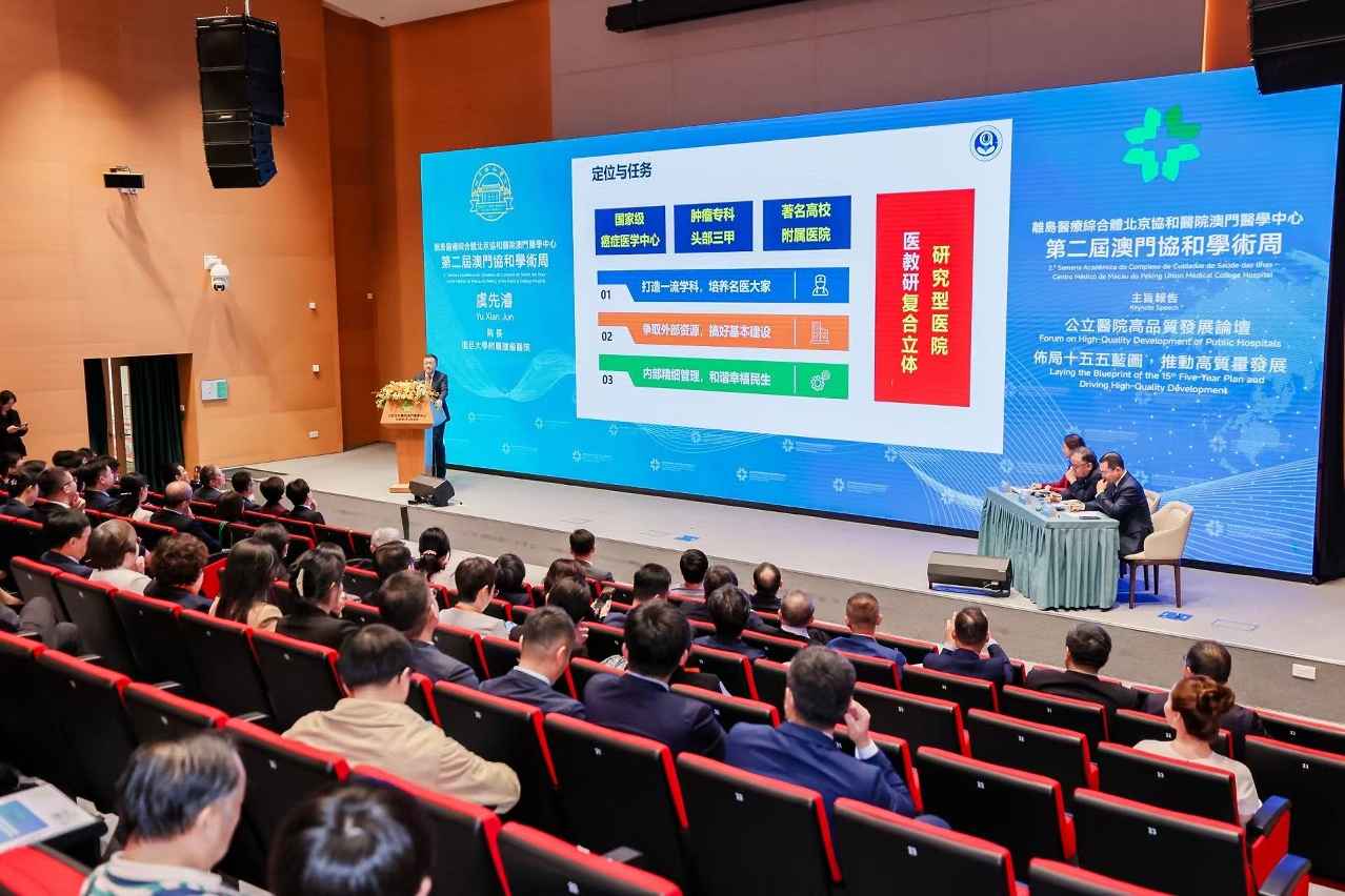 他在致辞中表示,自成立以来,协和澳门医学中心紧密配合特区政府“预防为先,妥善医疗”的施政宗旨, 以优先提供公共医疗服务为原则,积极发挥北京协和医院丰富的临床经验、管理体系及人才优势,在两地医疗合作、减轻公营医疗压力、疑难重症诊疗、医学人才培育等多方面,取得了显着的阶段性成就。第二届学术周将传承协和传统,以不同主题为核心,举办主旨报告及围绕多个医学界关注的议题开办10场分论坛。他期望,来自国内外的百多名专家及与会人员,可为澳门医疗界乃至粤港澳大湾区带来富有启发性与创新性的医学视角。