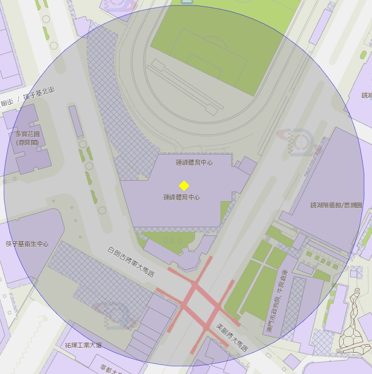 澳门东北大马路386号广华新邨第10座附近风险区域100米半径范围