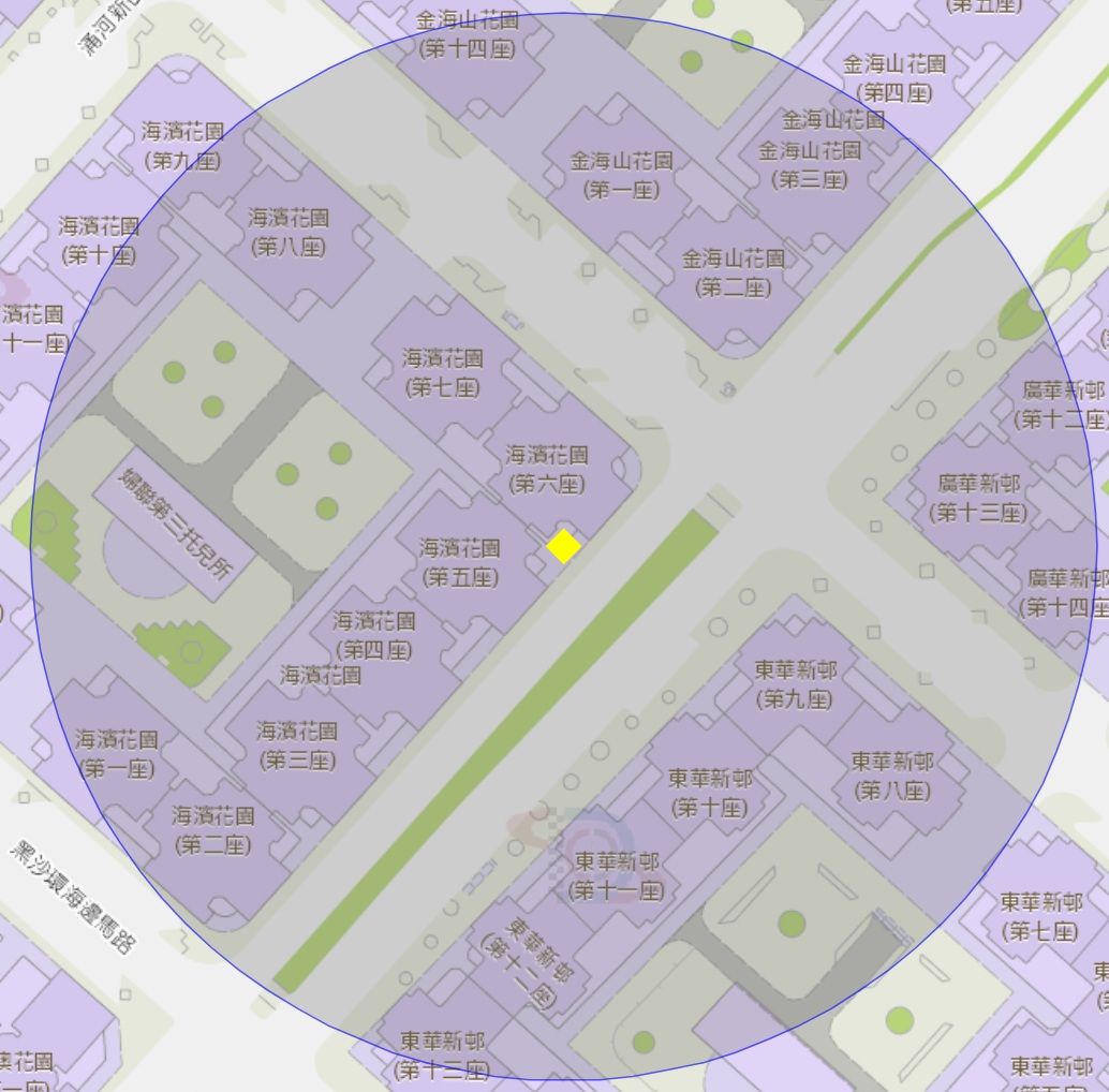 海滨花园银河员工巴士站附近风险区域100米半径范围