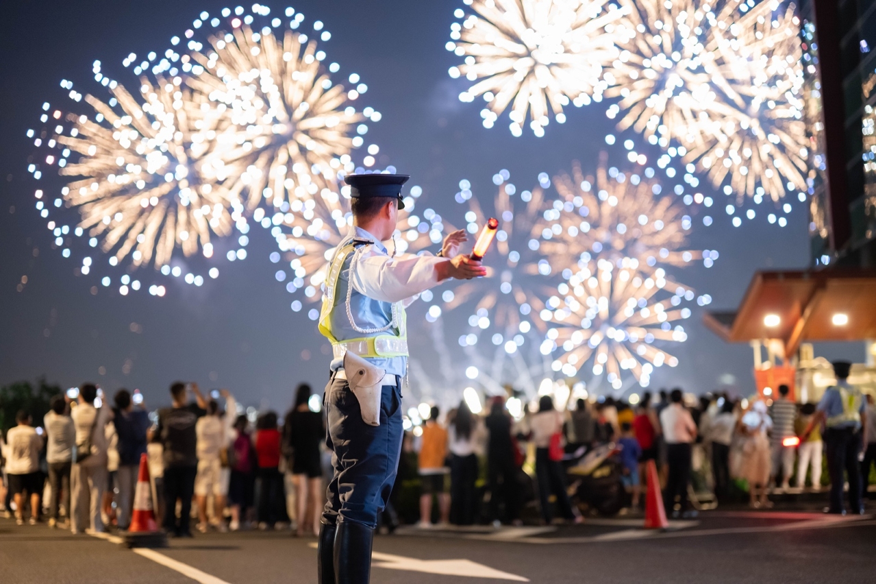 “第33届澳门国际烟花比赛汇演”分别于10月1日、2日及6日上演六场表演,届时预计有大量市民及旅客外出观赏烟花及庆祝节日,治安警察局将加派人员在旅游塔一带道路以及氹仔海洋大马路一带疏导人流和车流,以保持交通顺畅有序,同时亦将按情况实施临时交通措施。另外,于节假日期间,警方将加强打击酒后驾驶及的士违规等行为,切实保障市民旅客出行安全与道路通行秩序。