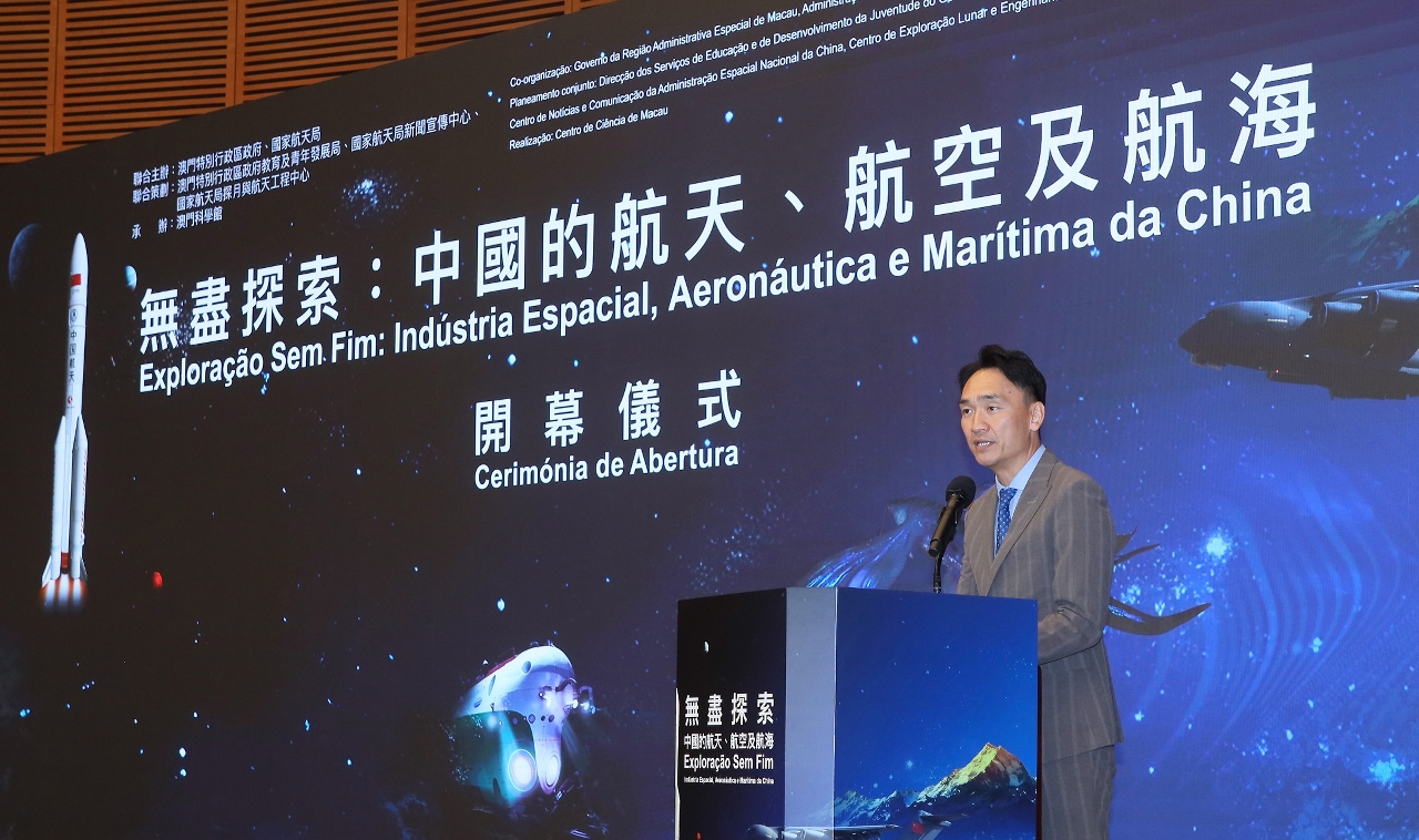 刘云峰副司长致辞时称,澳门作为粤港澳大湾区四大中心城市之一和区域发展的核心引擎,承载着国家的高度信任和殷切期盼。是次与澳门特区政府合办展览,旨在展示国家在科技创新领域的辉煌成就,让更多澳门同胞了解祖国航天、航空、航海事业的发展,并激发澳门年青一代对科学的热情,树立探索未知世界的远大目标。
