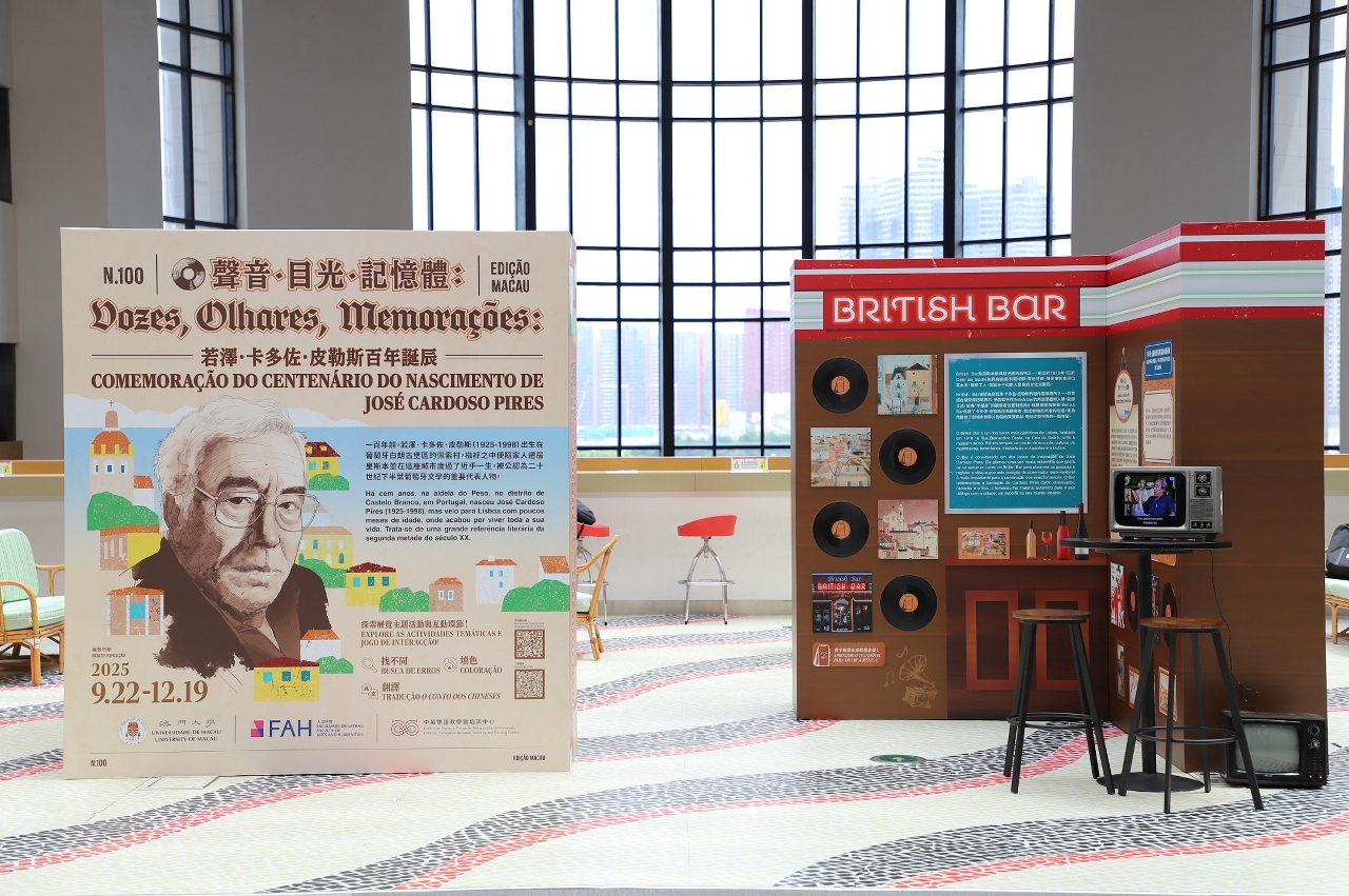 是次展览以“声音”、“目光”和“记忆体”三个维度为核心线索,以多角度、沉浸式地探寻卡多佐.皮勒斯留下的文学遗产与精神世界,探讨文学如何承载个体与集体的记忆,促进公众对其作品的阅读与理解。展览位于澳大伍宜孙图书馆(E2)二楼的空中花园,开放时间为上午9时至下午8时30分,展期至12月19日。