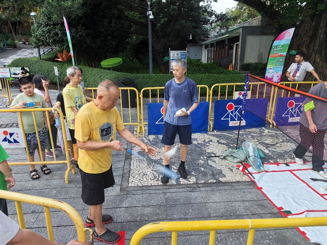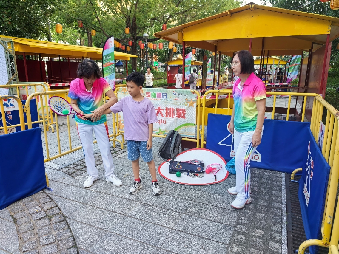 由体育局主办的“大众康体日”活动,于10月11日在白鸽巢公园举行,活动吸引了众多市民到场参与,当中有不少家长带同子女前来参与,藉着参与康体活动增进亲子关系,同时寓运动于娱乐。场内气氛温馨热闹,乐也融融。
