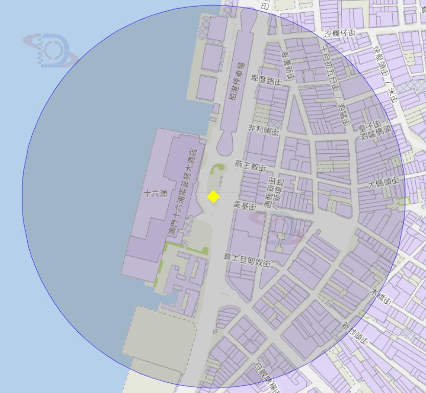 爹美刁施拿地大马路(近新马路一段)附近风险区域200米半径范围
