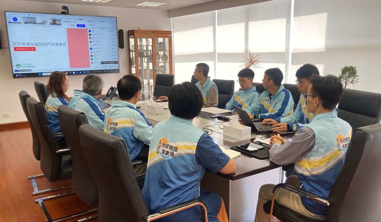 为助力民防架构主要成员应对热带气旋「风神」,地球物理气象局于10月19日召开热带气旋跨部门视像会商,向各主要成员代表通报「风神」的最新动态。