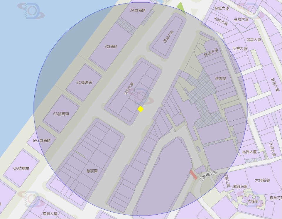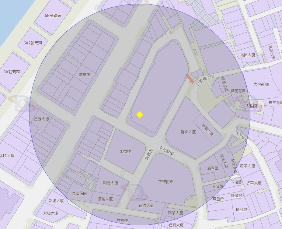 「约翰四世大马路」巴士站附近风险区域100米半径范围