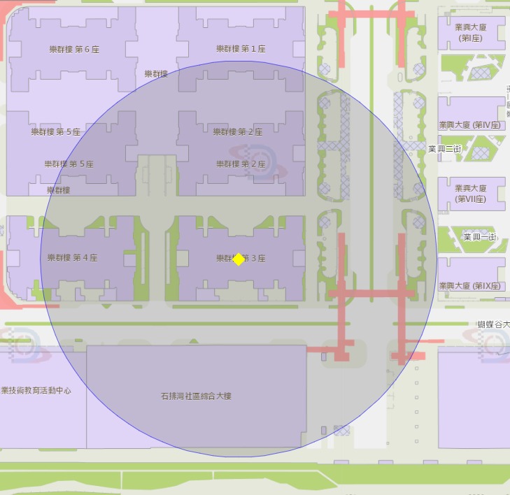 • 路环石排湾乐群楼第三座附近风险区域100米半径范围