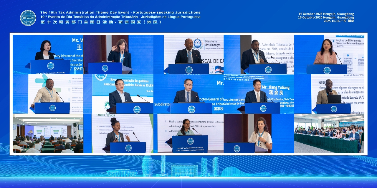 主题日活动于横琴粤澳深度合作区税务局举行,会上,安哥拉、巴西、佛得角、中国、几内亚比绍、中国澳门、莫桑比克、葡萄牙、圣多美和普林西比以及东帝汶等与会代表,就吸引投资税收优惠政策,以及提升税收征管透明度等主题发表演讲,并与企业、业界学界代表进行交流研讨。