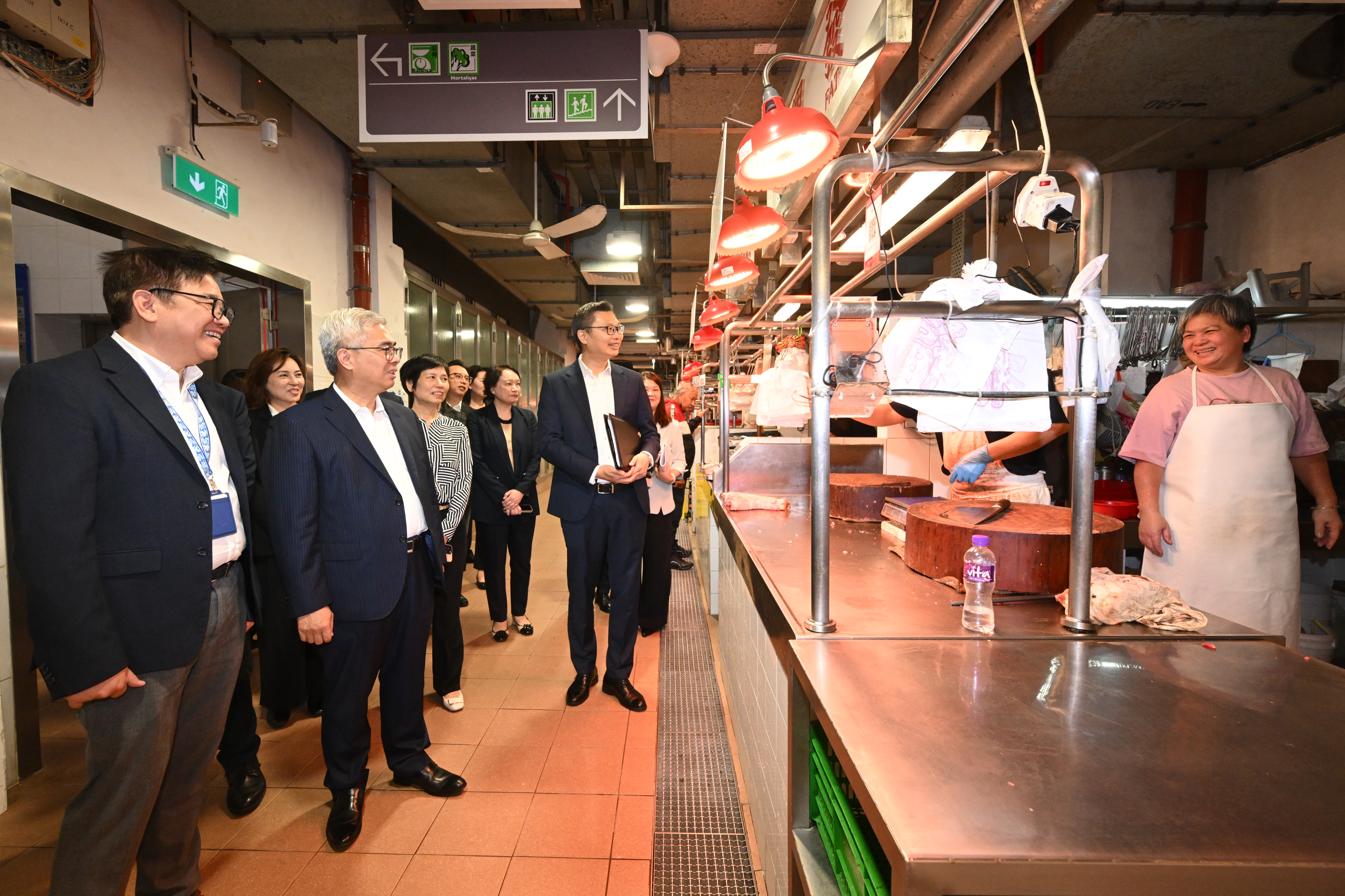 21日上午,黄少泽司长在法务局代局长周锡强等局方领导陪同下,实地察看局内工作环境,并详细了解与印务局合并的进展情况,随后亦走访登记及公证前线部门,与在场市民、工作人员交流听取意见。同日,黄司长在市政署管理委员会主席周伟迎、副主席麦俭明等陪同下,视察了多项市政民生设施,包括青茂办公大楼、青洲新批发市场、化验处实验室及雨污水泵房监控系统,听取食品安全保障、公共卫生管理及排水设施管理维护等工作汇报,其间亦前往沙梨头街市市政综合大楼,向沙梨头活动中心使用者问好并聆听设施优化建议,同时与街市熟食店主、鲜活食品摊贩交谈,实地了解经营状况。