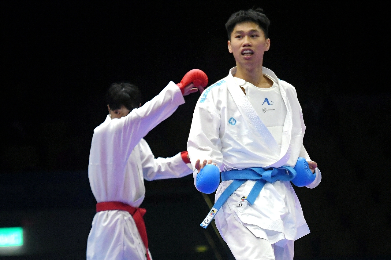 • 空手道队容君灏(IONG KUANG HOU)(右)决赛峰回路转取胜