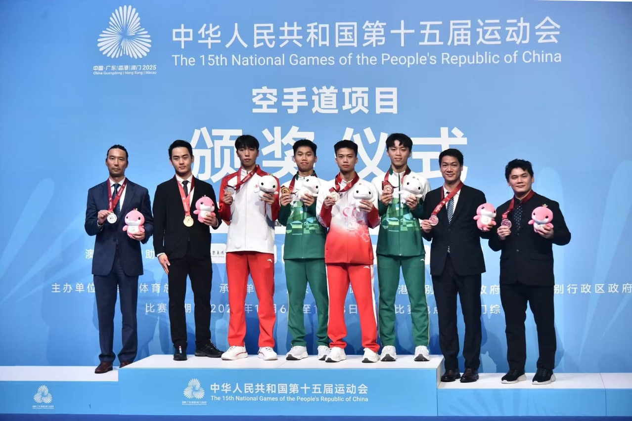 第十五届全国运动会群众比赛空手道男子个人67公斤级决赛在澳门举行。澳门代表队队员、澳门大学学生容君灏凭藉沉稳的战术及出色的技术发挥,夺得赛事金牌。这是澳大学生于今届全运会夺得的第二面金牌。