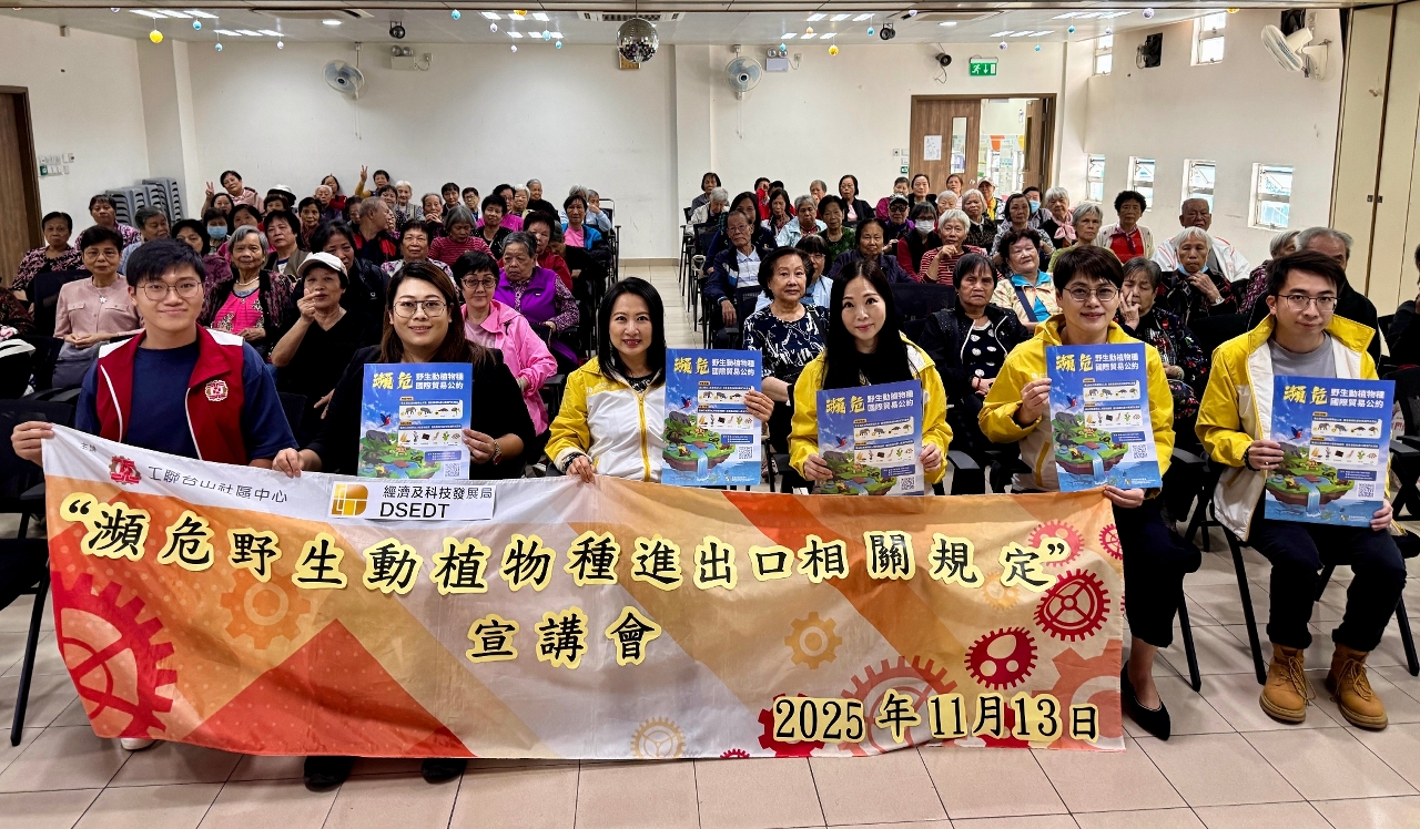 为持续做好《濒危野生动植物种国际贸易公约》(CITES)和本澳第2/2017号法律《CITES执行法》的宣导工作,经济及科技发展局(下称“经科局”)在10月至11月期间派员到澳门街坊会联合总会、澳门妇女联合总会、澳门江门同乡会、民众建澳联盟、澳门工会联合总会及澳门归侨总会,向逾600名与会者介绍本澳关于濒危野生动植物种的进出口规定。