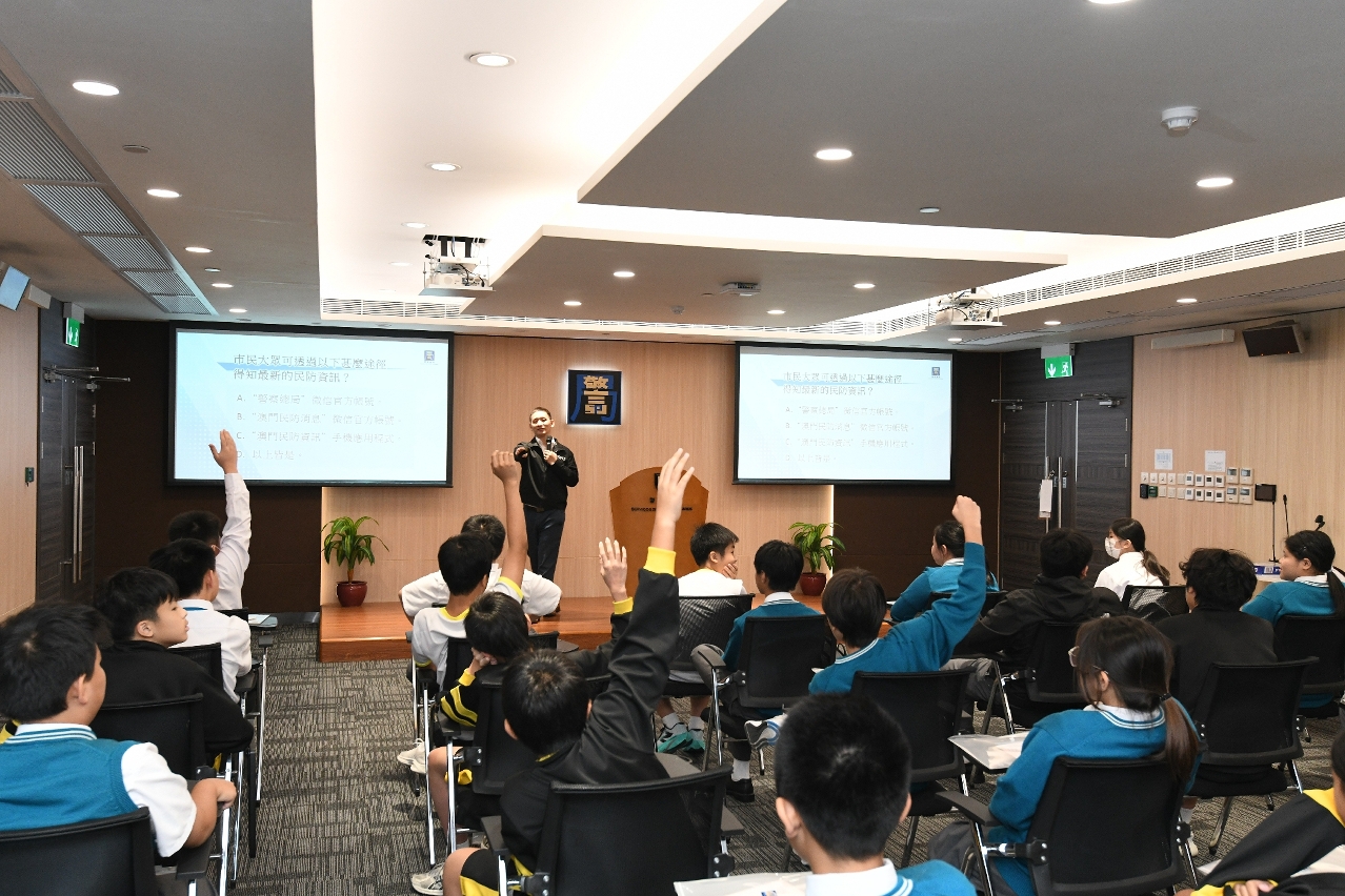 此外,透过互动环节,教导学生们使用警用对讲机进行模拟汇报,从中掌握沟通技巧及提升准确描述事件资料的能力,学生们反应踊跃,气氛热烈。随后,带领学生参观民防行动中心的各项设施,让他们能够亲身体验民防工作的日常情况,加深认识警察总局的民防职能。