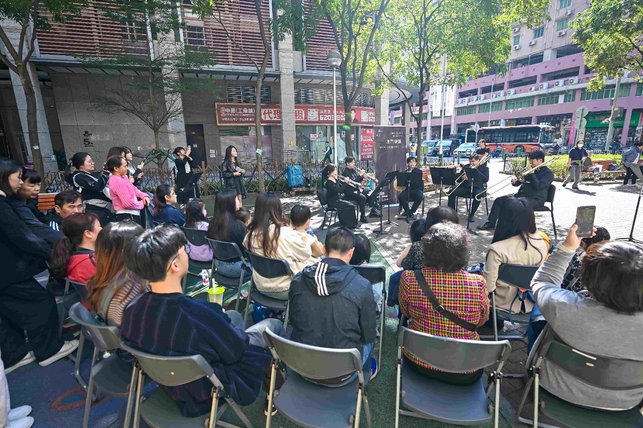 澳门乐团铜管五重奏与木管五重奏分别在黑沙环中街临时休憩区、兰花前地休憩区、氹仔花城公园及石排湾社区综合大楼天台花园合共4个社区,演奏《香榭丽舍大道》、选自《西城故事》的〈美国〉、《塞维利亚理发师》序曲、《美丽姑娘》、《阿里山的姑娘》等多首耳熟能详的经典曲目,深受观众喜爱。音乐会期间更与观众互动,拉近音乐与市民的距离。乐团弦乐乐师们则组成多队弦乐四重奏,在世遗景点之一卢家大屋上演4场音乐会,分别演绎拉威尔、圣桑、孟德尔逊,以及史麦塔纳的弦乐作品,音乐与世遗建筑融为一体,为旅客带来独特的视听享受。