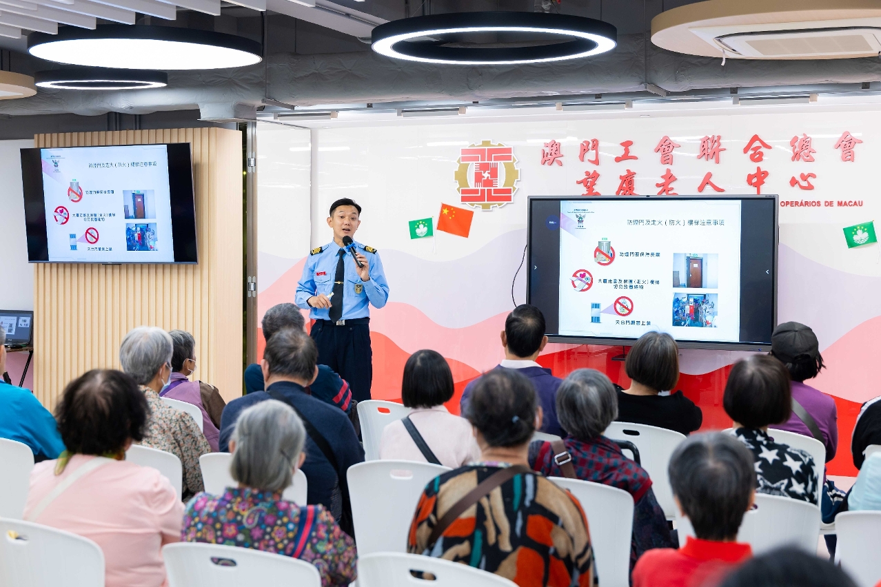 “家居防火安全”讲座首场已于11月25日下午假望厦社屋-望善楼的澳门工会联合总会属下之望厦老人中心举行,第二场讲座则于今(28日)下午假氹仔社屋-日升楼的澳门街坊会联合总会氹仔日升长者中心,内容主要围绕家居防火、用电安全与燃气炉具的正确使用方法、慎防一氧化碳中毒等安全资讯,出席长者对讲座内容颇感兴趣,均认真聆听和发问。