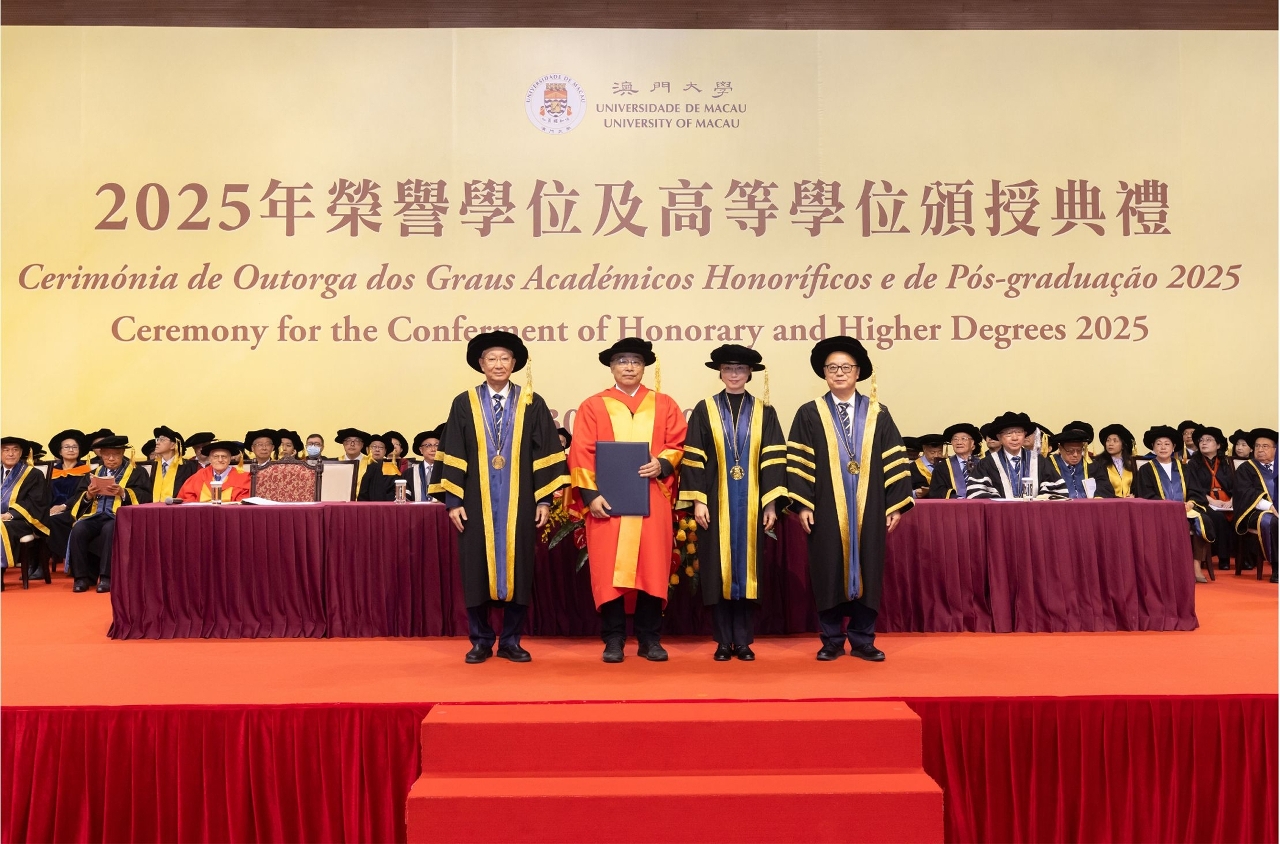 澳门大学今(30)日举行2025年荣誉学位及高等学位颁授典礼,向材料科学晶体结构领域权威学者张泽及诺贝尔经济学奖得主汤玛斯‧萨金特(Thomas J. Sargent)颁授澳大荣誉博士学位,以表彰其卓越成就及为社会所作出的重大贡献。