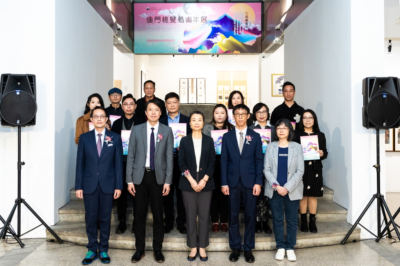 由文化局主办的2025年“澳门视觉艺术年展——中国书画类”于 12月2日在塔石艺文馆开幕,中央人民政府驻澳门特别行政区联络办公室宣传文化部副部长白冰、文化局副局长蔡健龙、文化发展咨询委员会委员陈浩星、颐园书画会会长李俊鸣及澳门日报常务副总编辑蔡彩莲出席主礼。
