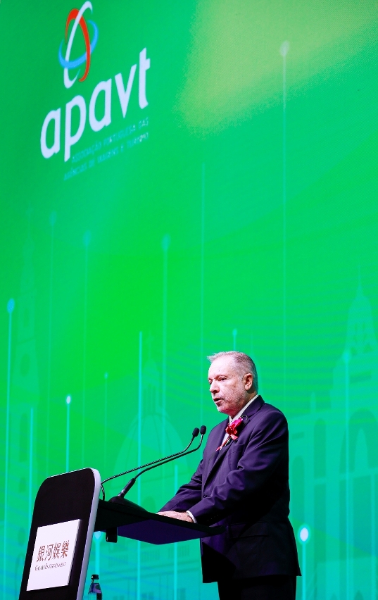 佩德罗‧科斯塔‧费雷拉致辞时表示,澳门是庆祝葡萄牙旅行社协会成立75周年及举办第50届年会场地的不二之选。澳门这座充满活力和安全的城市,长久以来是中西文化交汇之地,堪称服务文化与尊重顾客的典范,既有经济发展的坚实模型,更是通往世界最大出境旅游市场的门户。