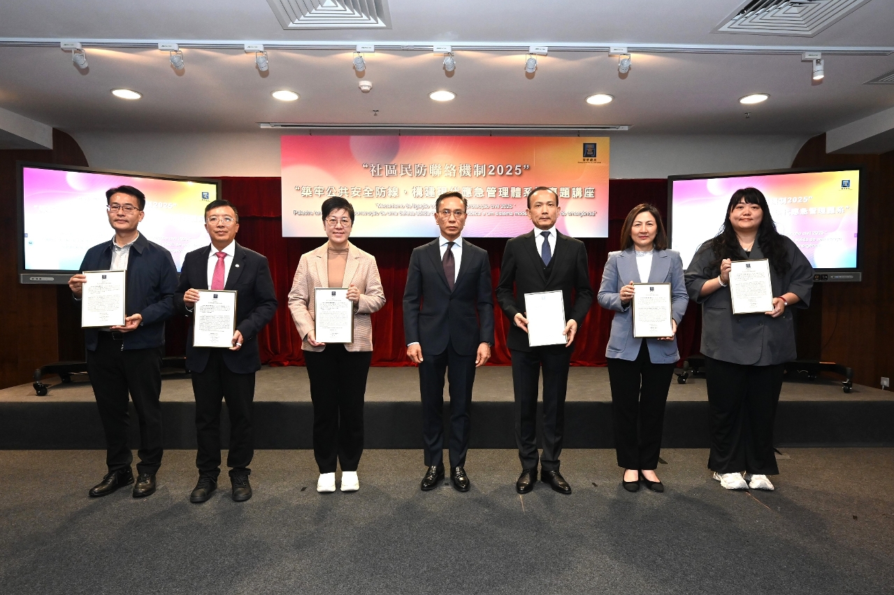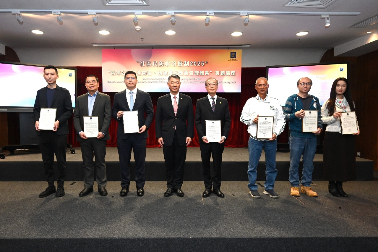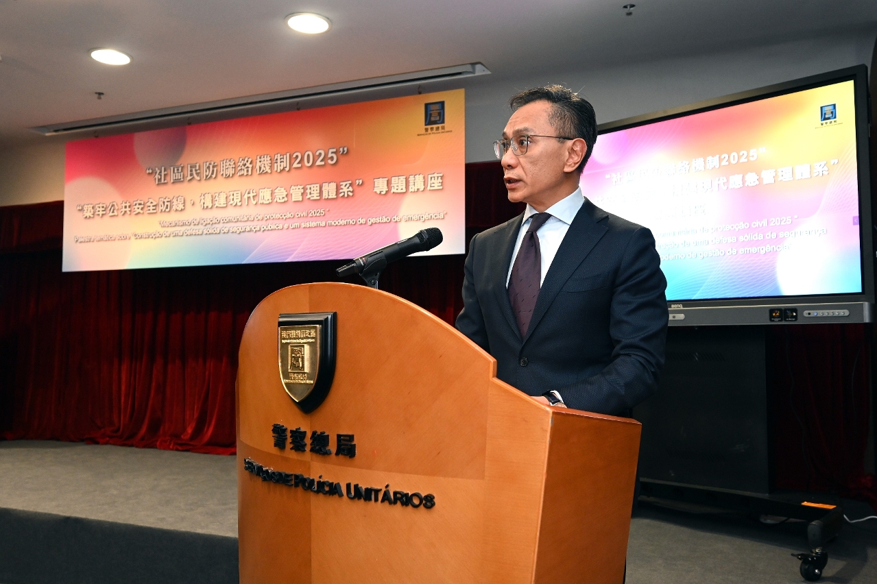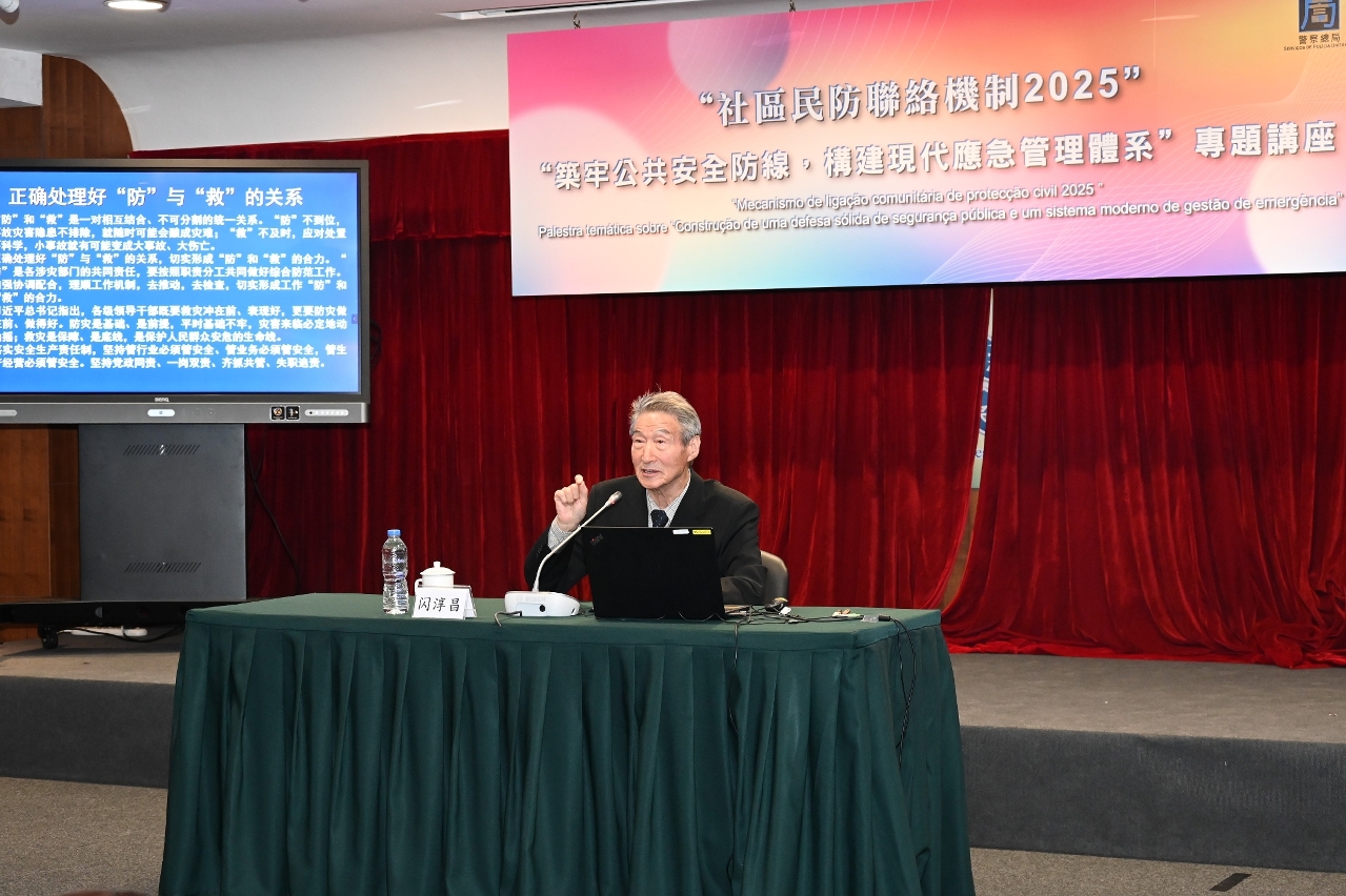 为深化民防范畴各部门对国家“大安全、大应急”框架的理解,进一步提升澳门城市安全治理水平,警察总局于12月4日在出入境事务大楼举办专题讲座,主题为“筑牢公共安全防线,构建现代应急管理体系”。讲座特邀原国务院参事、原国家减灾委专家委副主任闪淳昌教授,以及中国工程院院士、清华大学公共安全研究院院长范维澄教授担任主讲嘉宾。保安司司长陈子劲、警察总局局长梁文昌,联同民防架构、社区民防联络机制代表,以及民防志愿者合共140人出席。活动在各方代表的支持下,设有40个线上直播点,线上参与总人数逾920人。
