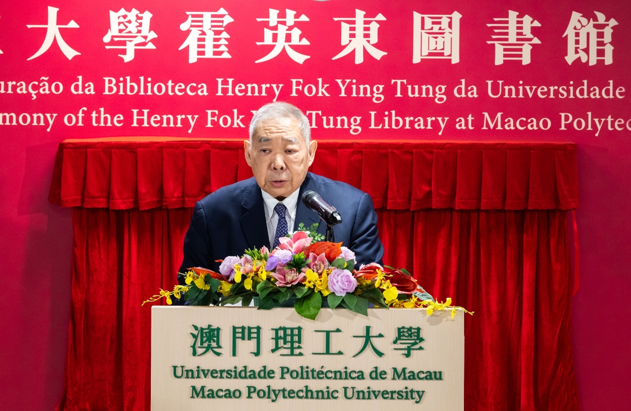 霍震寰致辞时表示,父亲霍英东先生一生关心国家发展,重视教育与培养人才,澳门霍英东基金会致力于支持国家和澳门高等教育事业的发展,为培养优秀人才贡献力量。澳理大为国家及澳门培养了大批爱国爱澳人才,办学理念与澳门霍英东基金会办会宗旨高度一致。感谢澳理大美意,期盼霍英东图书馆启用后,能为澳理大高水平发展提供有力支持,推动澳门教育科技人才一体化发展。澳门霍英东基金会将秉持霍英东先生的爱国传统和慈善精神,继续支持国家和澳门高等教育发展,为澳门的繁荣稳定,为国家富强和民族复兴作出贡献。