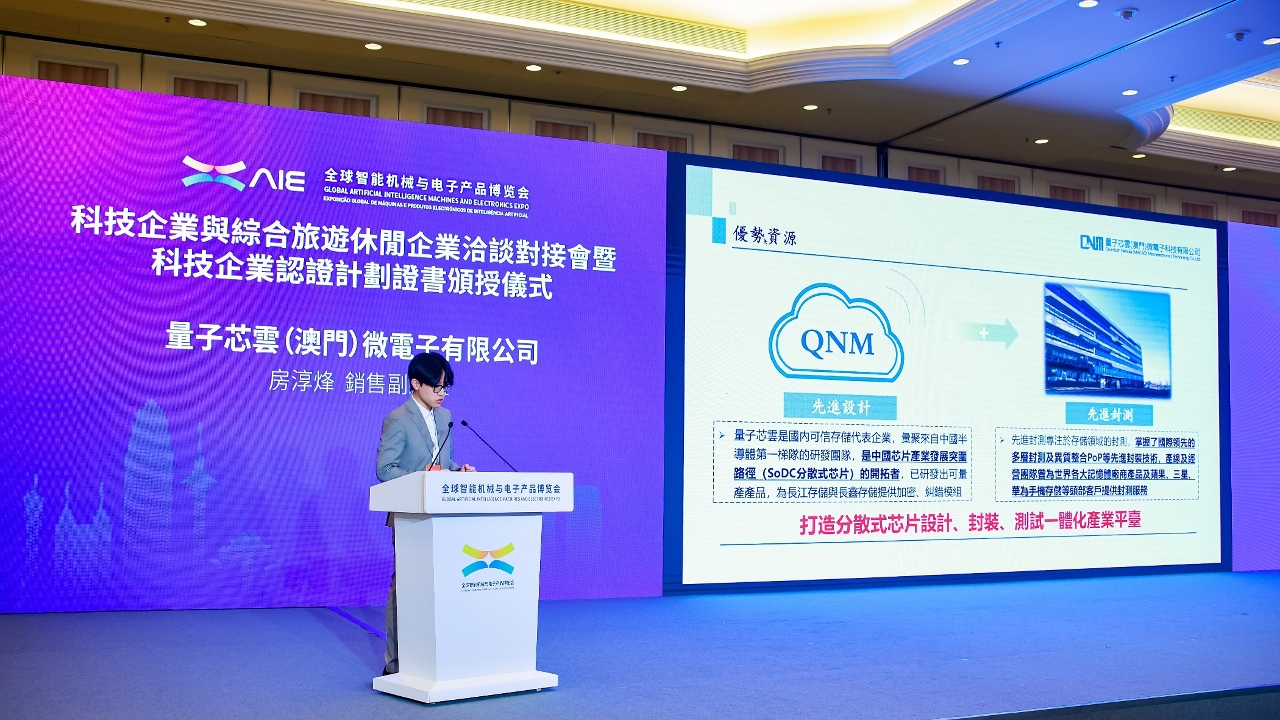 “对接会”于2024年10月首次举行,旨在促进科技企业及休闲企业加强合作、开创商机。今年同时邀请AIE“澳门创科馆”的参展企业提供其产品及服务项目资料,与休闲企业开展前期配对,当中有超过20组预配成功的科技企业与休闲企业,在AIE期间进行一对一的商业洽谈及交流。另外,有本地科技企业在“对接会”期间介绍以大型综合旅游休闲企业为应用场景的空气消毒技术方案及智算一体机。