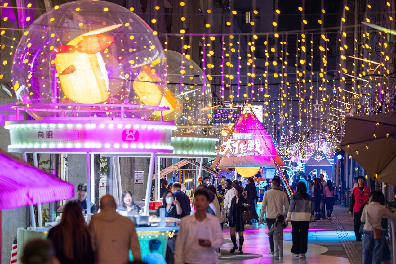 此外,本地创作团队在三个区域设置多个特色装置,把光影节打造成凝聚本地文化的共同舞台,形成可观看、可体验、可参与和可回访的文化动线,让居民与旅客在夜里街区中分享共创。