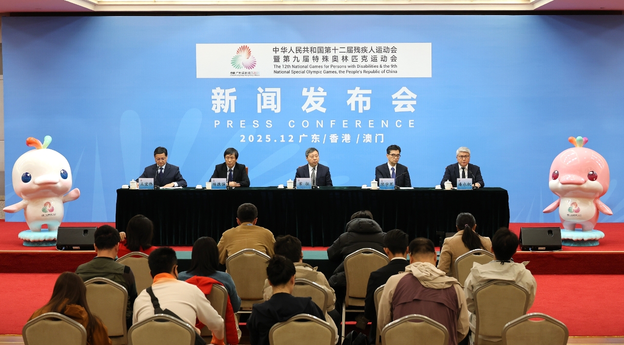 全国第十二届残疾人运动会暨第九届特殊奥林匹克运动会(下称“残特奥会”)今(15)日在深圳举行新闻发布会,介绍残特奥会总体运行情况和赛事组织成果。残特奥会组委会副主任、中国残联党组成员常征、残特奥会广东赛区执委会副主任、广东省残联理事长陈学军、残特奥会香港赛区统筹办公室主任杨德强及澳门赛区筹备办公室主任潘永权出席。