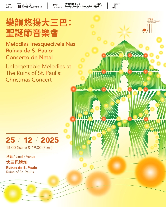 由文化局主办、澳门乐团有限公司承办的“乐韵悠扬大三巴”音乐会,将于圣诞节(12月25日)傍晚6时及7时在大三巴牌坊举行,澳门乐团携手公开招募、以及本澳两所学校合唱团组成的公众合唱团队,演绎多首充满节日气氛的佳节曲目,与市民旅客共庆佳节。