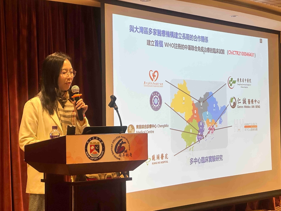 澳大健康科学学院教授梁丽娴以“中药现代化的研究技术与方法”为题,向学生深入介绍中医药如何结合现代科技破解癌症治疗难题,并分享最新科研成果。她展示了团队利用多维组学与人工智能揭示中药活性成分及作用机理,并分享人参多糖在免疫疗法中的增敏作用。梁丽娴强调,生命科学与医药创新本质上是跨学科的,鼓励学生打好基础,积极跨界合作。
