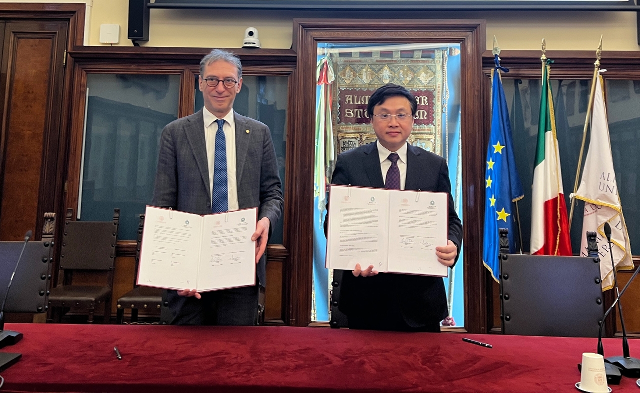 为拓展澳门高等教育国际化发展,促进国际化人才培养与跨领域科研创新,澳门理工大学校长严肇基率团访问意大利着名高校,与博洛尼亚大学(University of Bologna)校长莫拉里(Giovanni Molari)代表两校签署《联合授予双博士学位协议》,标志着两校在联合科研、高新科技人才培养等方面达成合作共识,进一步强化中国与意大利的学术合作,为澳门及大湾区汇聚国际创新资源,推动澳琴国际教育(大学)城的国际化建设,成果丰硕。