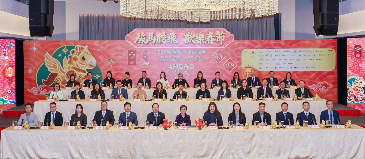 旅游局今(3)日举行新闻发布会,介绍“欢乐春节─2026年龙腾舞跃贺新春”社区巡演、“骏马腾飞 欢乐春节 2026农历新年花车汇演”及“金骏云翔  欢乐春节”2026无人机烟花汇演三项活动内容。当中,备受瞩目的“骏马腾飞 欢乐春节 2026农历新年花车汇演”将于2月19日至3月8日热闹登场。此系列活动涵盖花车汇演、文艺表演、花车展览及线上游戏等多元环节,而重头戏的花车汇演将分别于年初三219日)在西湾湖一带正月十二(228日)在北区精彩亮相,促进社区旅游及夜间经济。