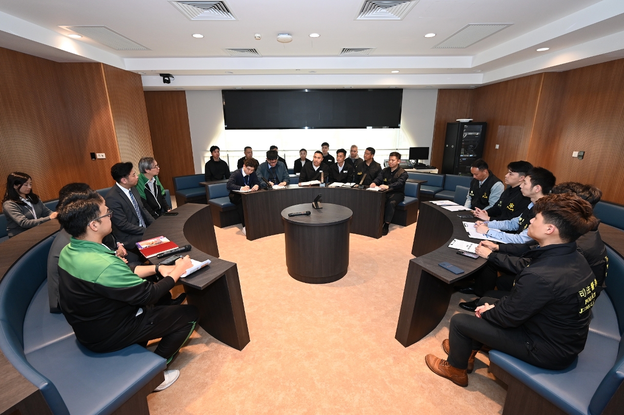 接报后,治安警察局人员率先赶抵现场,迅速执行外围封锁、设立警戒区域,并根据事态发展动态调整防护部署,确保现场处置环境安全受控。司法警察局危机谈判组亦随即到场,运用专业谈判技巧与危机处理策略,协助当事人稳定情绪、厘清诉求并化解危机。过程中模拟有学生于疏散途中跌倒受伤,消防局人员即场进行初步急救及伤患处理,并安排送院治疗。演练过程顺利,有效验证了校园安全机制的可行性与多部门的协作效能。