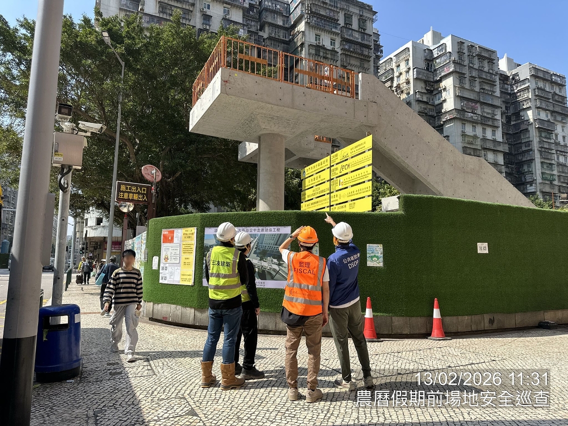 为确保新春期间在建中公共工程的安全,公共建设局近日持续加强巡查辖下工地,排查安全隐患,并要求各工地须切实执行新春期间的安全部署,为居民安心度岁提供保障。