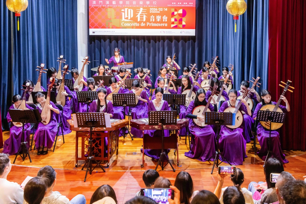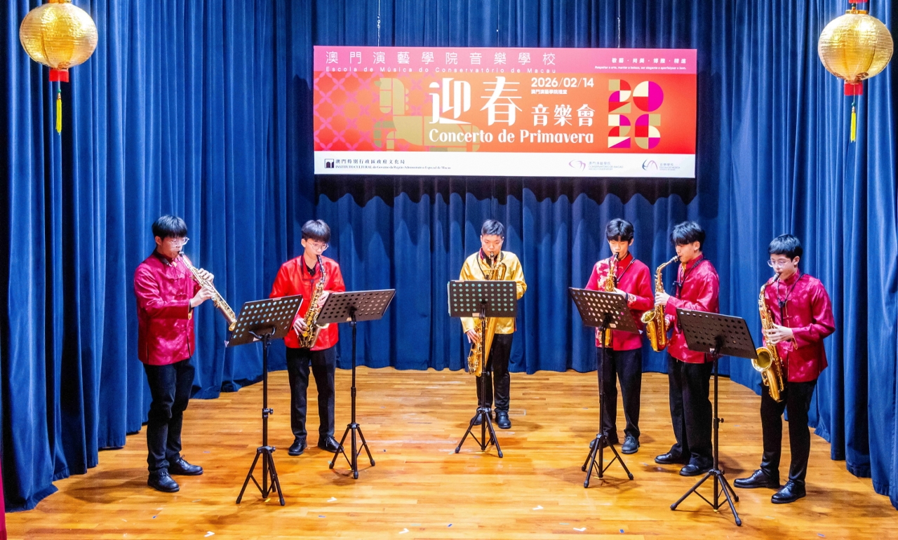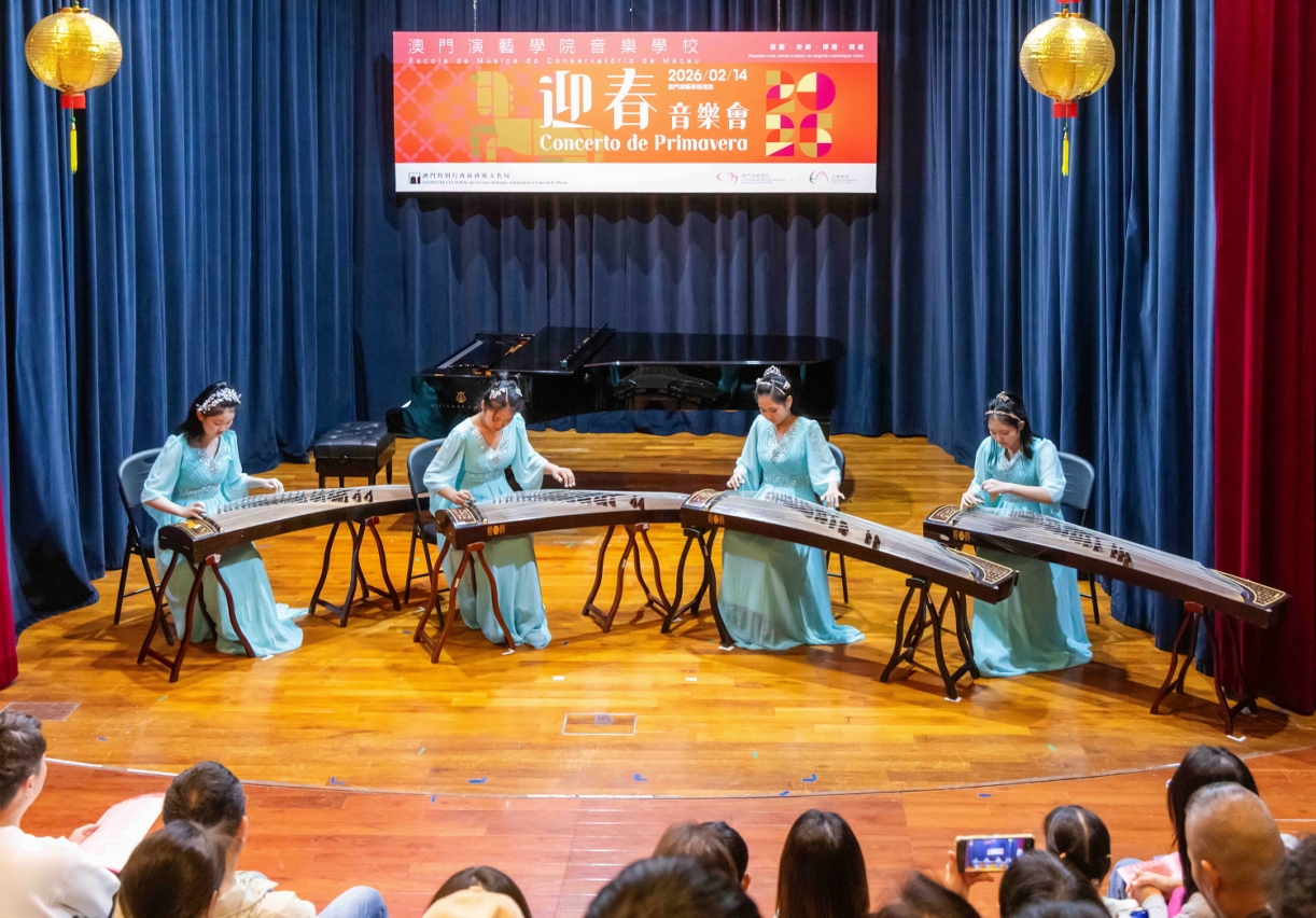 文化局澳门演艺学院音乐学校于2月14日在澳门演艺学院礼堂举办“迎春音乐会2026”,音乐会汇聚该校与中葡职业技术学校合办的表演艺术班学生,以及音乐学校持续艺术教育课程的优秀学子,演绎多首中西名曲,以悠扬旋律向观众送上诚挚的新春祝福。文化局副局长郑继明,文化局澳门演艺学院院长陈理理,中葡职业技术学校校长陈盛畴、副校长潘维念及黄德麒出席,共同见证学生展现才华,并与观众一同迎接新春。