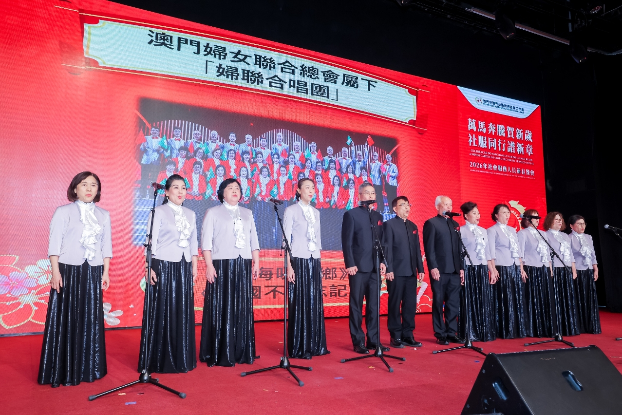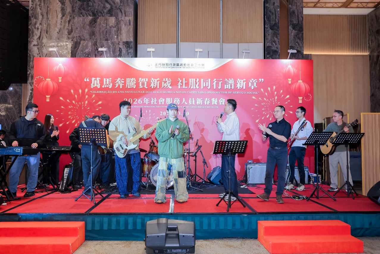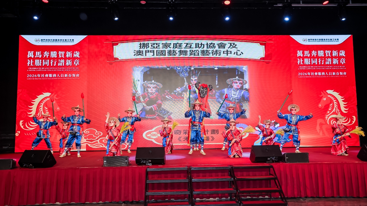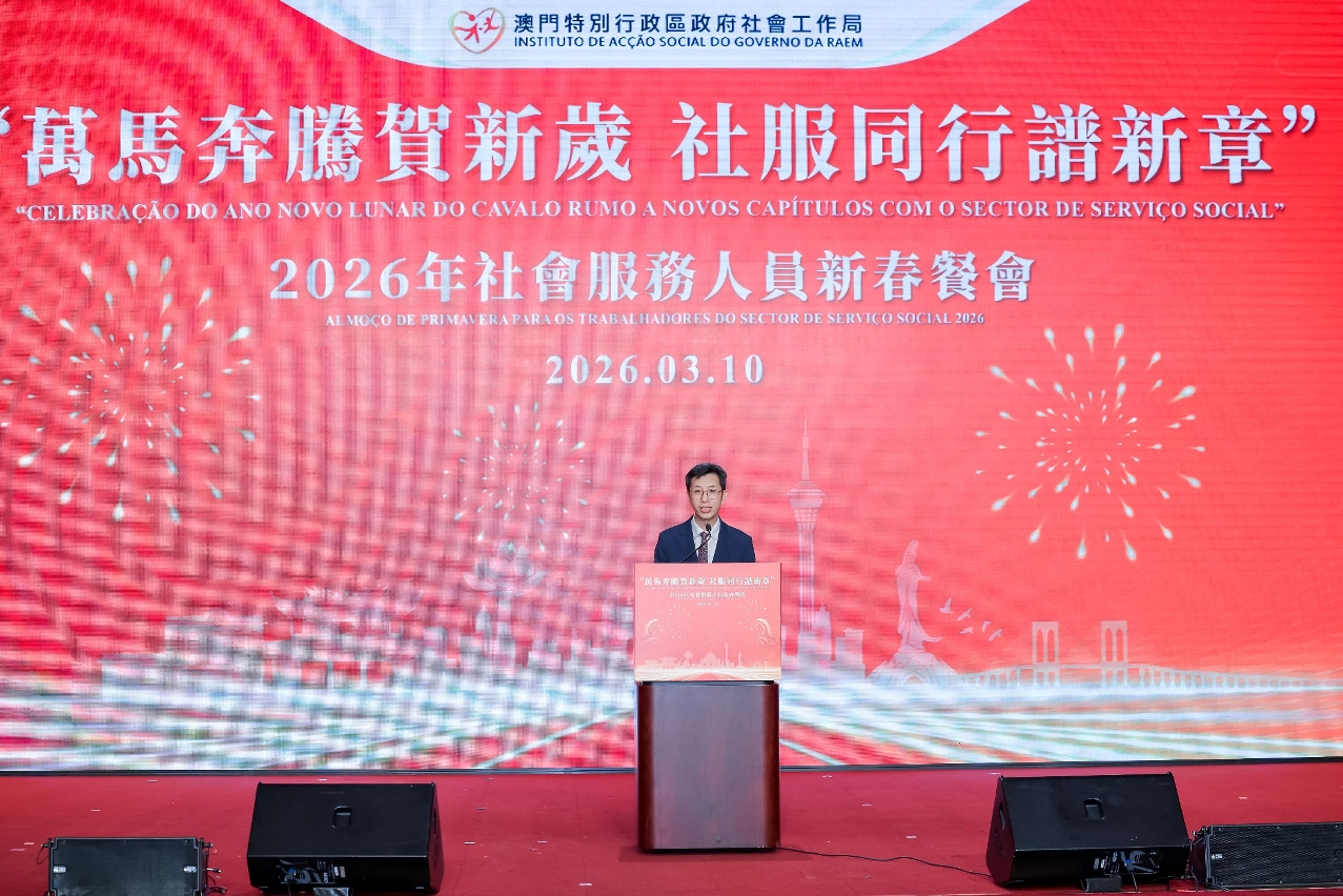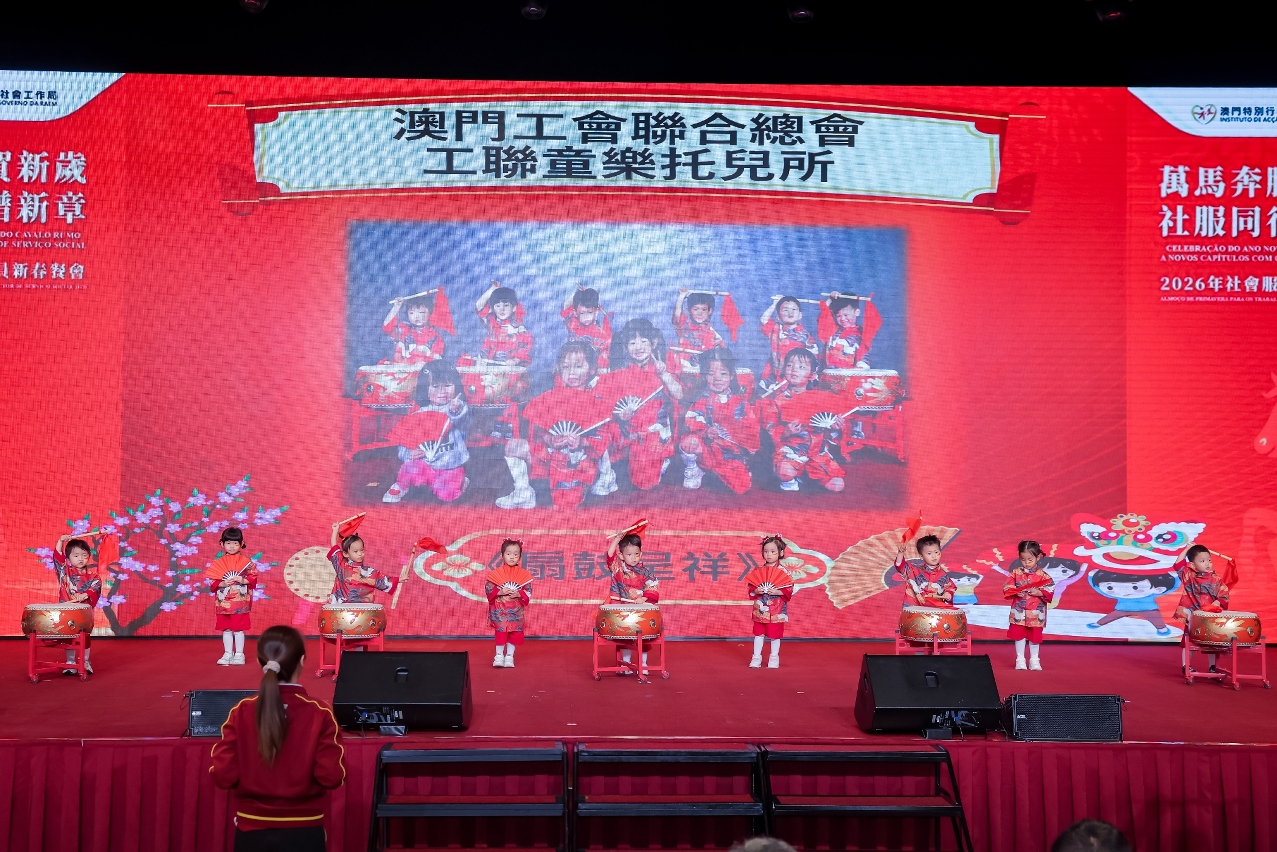 社会工作局于3月10日在澳门渔人码头会议展览中心举行“万马奔腾贺新岁  社服同行谱新章”2026年社会服务人员新春餐会,来自涵盖青少年、家庭、复康、长者及社区服务等不同服务领域的机构代表,以及政府部门代表等约700人聚首一堂,共庆新春。餐会邀请多个社服团体演出,展现多元才华与潜能,由不同机构的服务使用者和社会工作局同仁跨界别合作,呈献了温馨又具感染力的表演,充分展现了业界多元一心的精神;舞台下社会服务机构代表及社会各界人士热情交流,气氛融洽,共同建构一个互助共融的平台。
