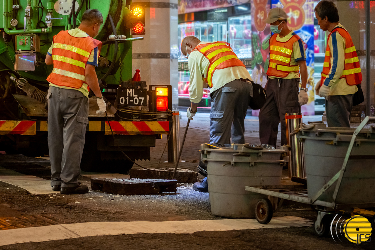 市政署渠務人員不分晝夜到各區排查、疏通及維護下水道暢通。