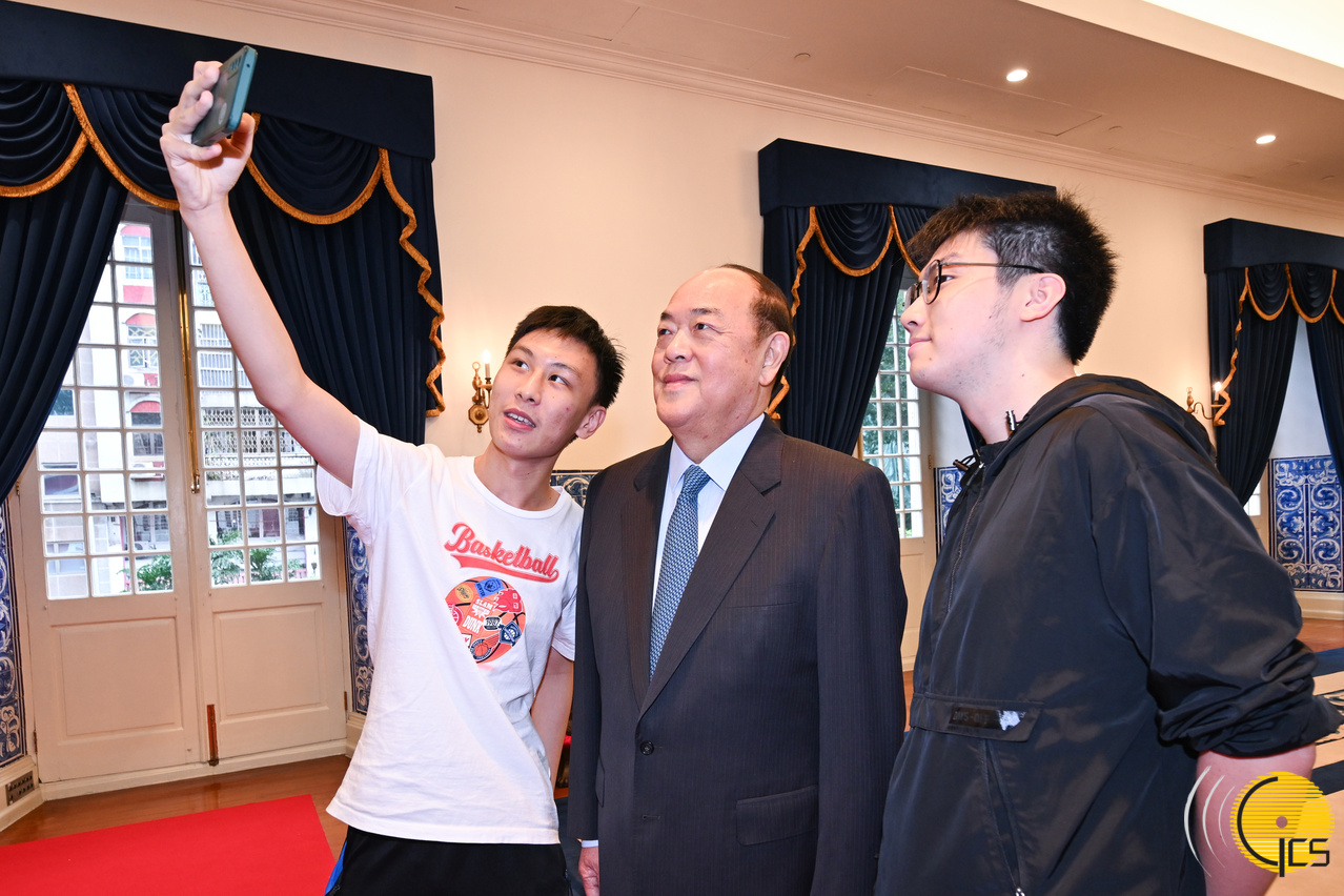 行政長官賀一誠與到訪政府總部的公眾交流,合影留念。